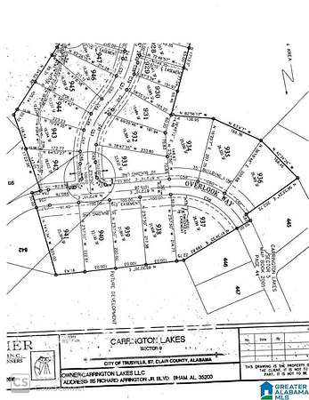 Est $389/moGated community with beautiful rolling terrain. Spectacular views of mountains and lakes throughout the community. Lake access for residents. Beautiful residents clubhouse, community pool, tennis courts, beach volleyball court, trails. Trussville schools. Convenient to interstates, grocery, and retail shopping. This lot and select other custom lots are now available for individual purchase. Purchaser may still use one of Carrington Lakes custom builders. See agent for details. Lot size per tax map.