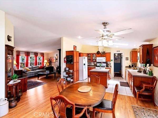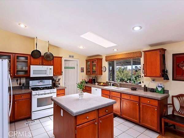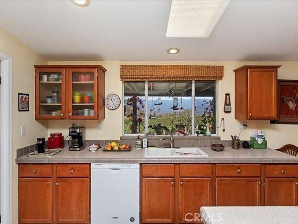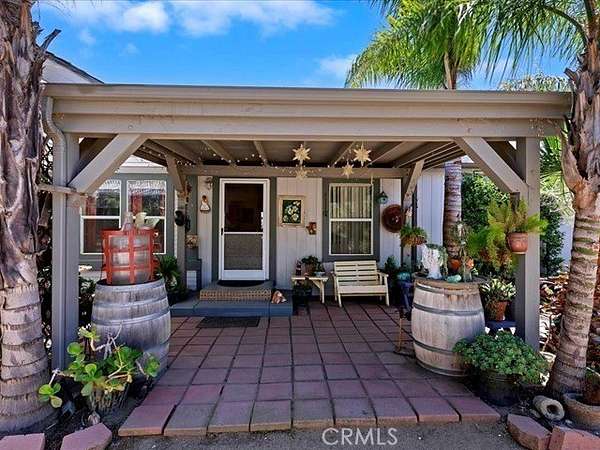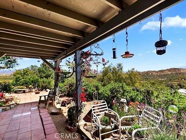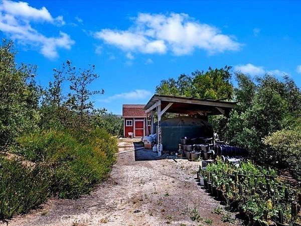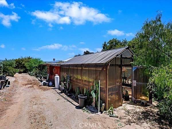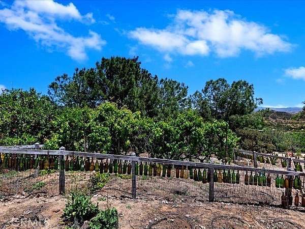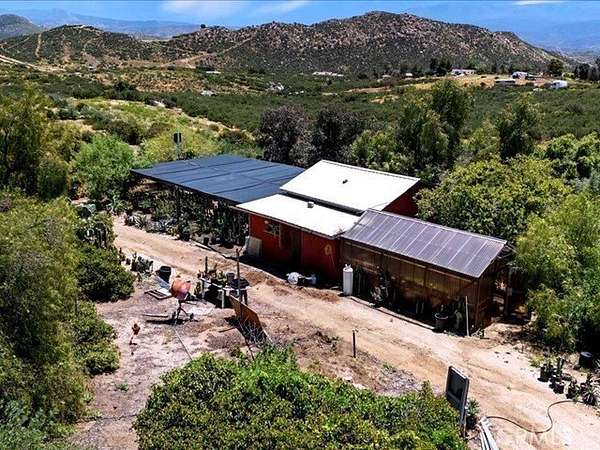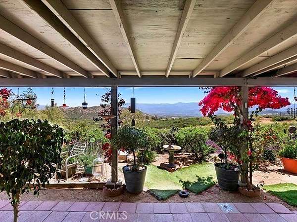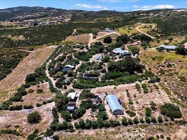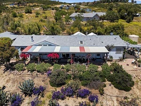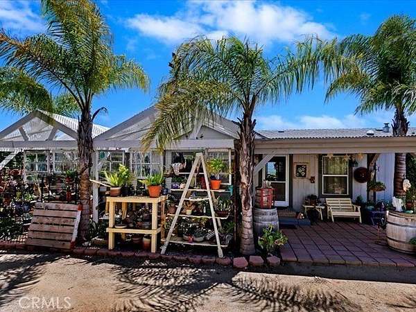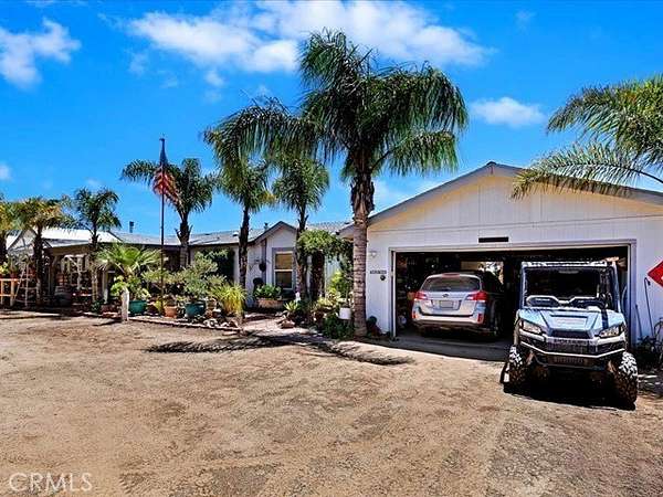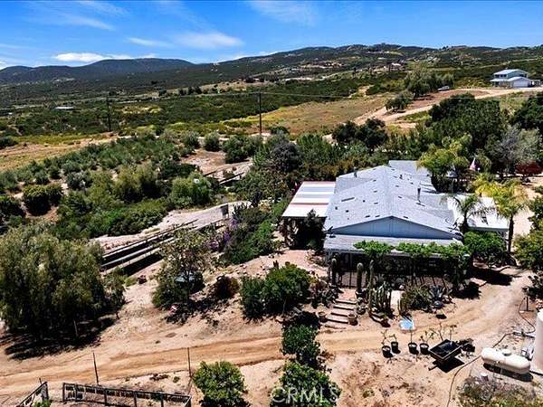 Fantastic ranch nestled 4.86 acres of beautiful usable land. 10 Minutes to Temecula. This manufactured home boasts an abundance of natural light and offers a serene escape from the hustle and bustle of city life. Spacious 4 bedrooms with 3 bath, charming kitchen that overlooks the beautiful views and wonderful birds of all kinds. Darling porch front and back. Two car garage and plenty of parking space. Brand new roof on house and garage, and new patio covers. Step outside to explore the stunning grounds adorned with beautiful gardens featuring 12 citrus trees, 12 assorted fruit trees, and 200 olive trees, creating a true oasis of tranquility. With 2 wells and solar panels, sustainability meets convenience. Wander the trails that meander through the property, or indulge your green thumb in the 2 greenhouses while utilizing the 4 Tuff sheds for all your workshop or storage needs. . Fantastic views with usable land. Enjoy diverse birdlife or simply enjoying the peaceful ambiance from the covered patios. Close to wineries, yet secluded enough to offer privacy. This home is fully fenced and cross-fenced with a security gate for added peace of mind. Miles of trails and plenty of room for horses.