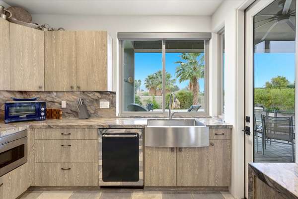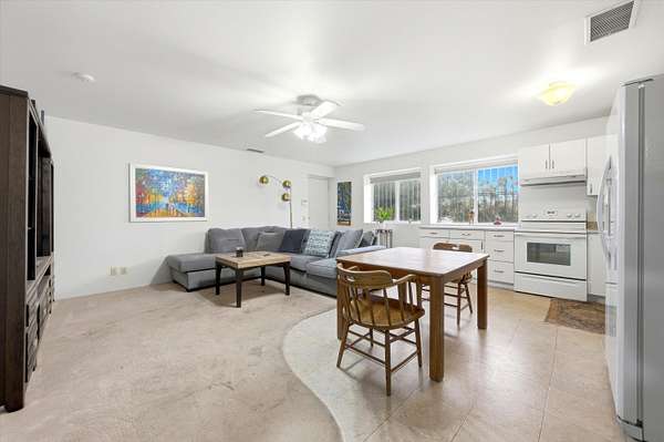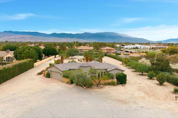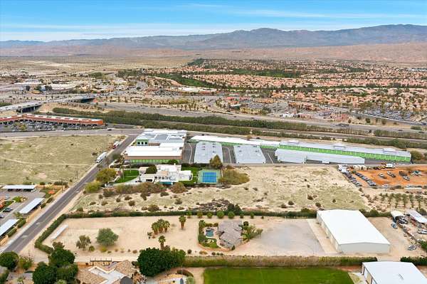 An exceptional opportunity to own a truly one-of-a-kind 2.3-acre property in the heart of Bermuda Dunes. This versatile estate features an expansive 9,600-square-foot insulated clear-span shop, complete with a built-in two-bedroom, two-bath fully equipped apartment and a bonus open-air deck-ideal for live/work flexibility or hobbies. The shop offers four 14' x 14' automatic roll-up bays and an additional half bath, providing outstanding functionality and access. The property also includes a walled in custom one-bedroom, one-and-a-half-bath residence showcasing a beautifully appointed kitchen with nostalgic Heartland appliances, an open great-room concept, and abundant natural light. Large windows and sliding glass doors open to lush landscaping, a sparkling pebble-tech pool and spa, and serene outdoor living spaces. The primary suite features dual sinks, a walk-in shower, a spacious closet, and an in-home washer and dryer. A two-car garage completes the residence. Additional highlights include three RV hookup sites, an RV dump station, mature citrus trees, and ample space to build a larger custom home if desired. Conveniently located with easy access to surrounding cities, freeway connections, dining, and shopping, this rare property truly offers endless possibilities. Come experience all this remarkable property has to offer.