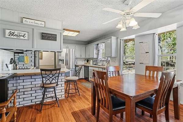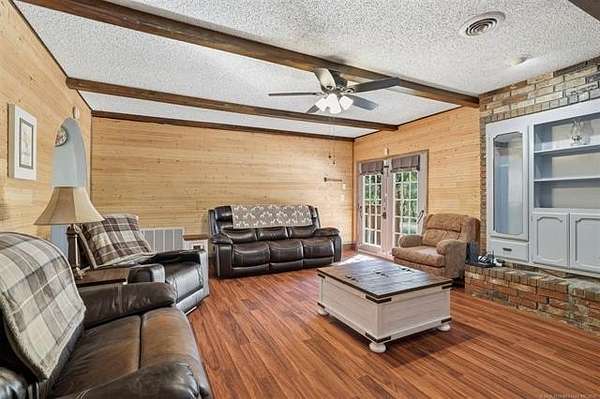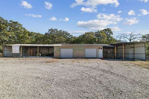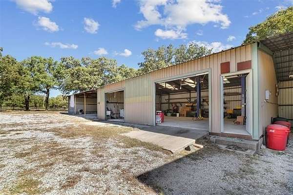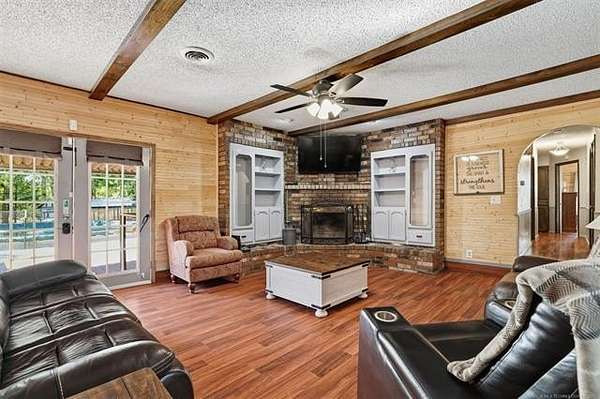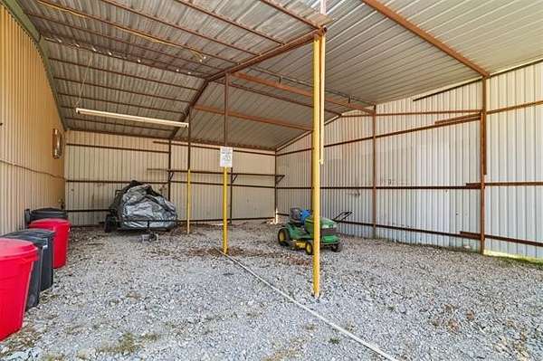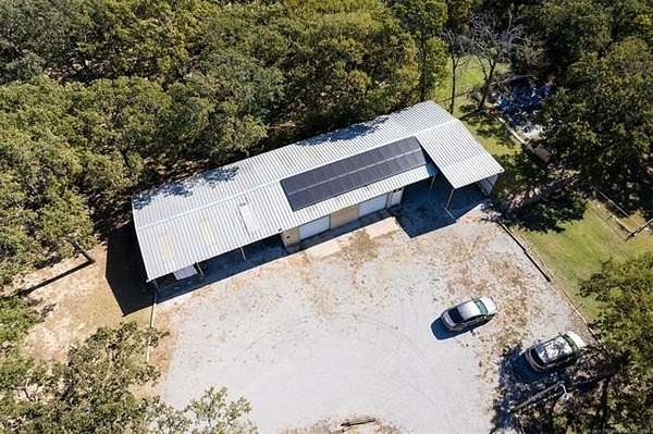 Behind a solar-powered gated entry, this beautiful brick home rests on 1.9 fully fenced acres, thoughtfully subdivided for easy backyard vehicle access. Inside, curved entryways, wood-beam ceilings, built-ins, and a cozy wood-burning fireplace create warmth and charm. The kitchen features a breakfast bar, wall oven, pantry, and adjoining dining area perfect for family meals. The primary suite offers a private bath, with two additional bedrooms and two full baths for guests or family. A bonus room adds flexibility for an office, gym, or guest space. French doors open to a large partially covered deck overlooking a brand-new 33-foot above-ground pool with a safety fence-ideal for entertaining or relaxing. Outside, you'll find two campfire areas, twelve raised garden beds, and a 25-foot professionally built chicken coop with a walk-in hen house and exterior-access nesting boxes. The property includes a double carport, a three-bay carport, dual RV hookups, and a storm cellar. A highlight of this property is the detached shop with a professional-grade car lift, perfect for projects or business use. Solar panels power both the home and shop, keeping energy costs low. Recent updates include a new roof, full fencing, new gates, fresh paint, flooring, pool, pump system, and more. Located just outside city limits yet minutes from Ardmore conveniences, this property offers the best of country living-space, function, and efficiency, all in one beautifully maintained package.