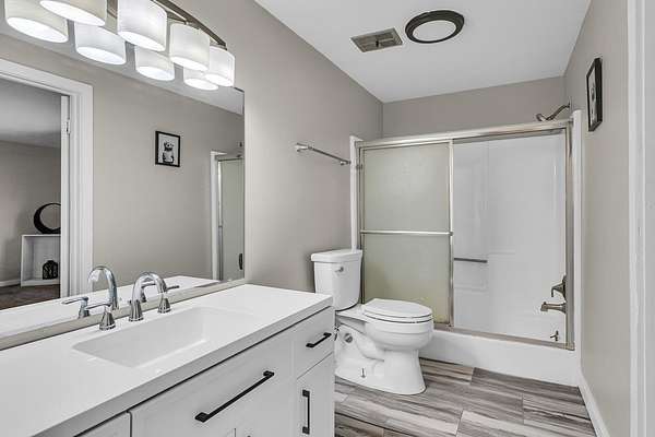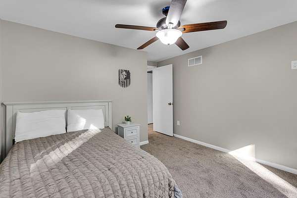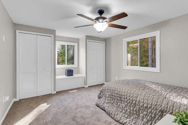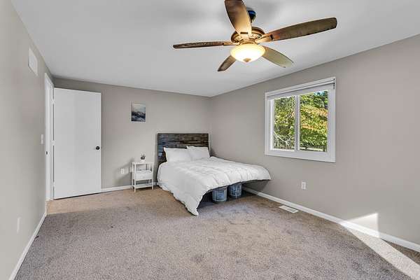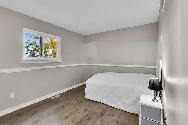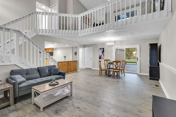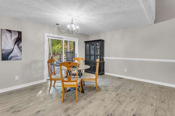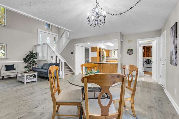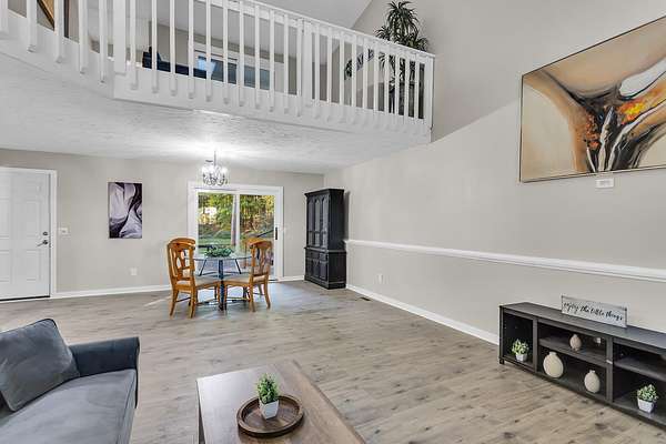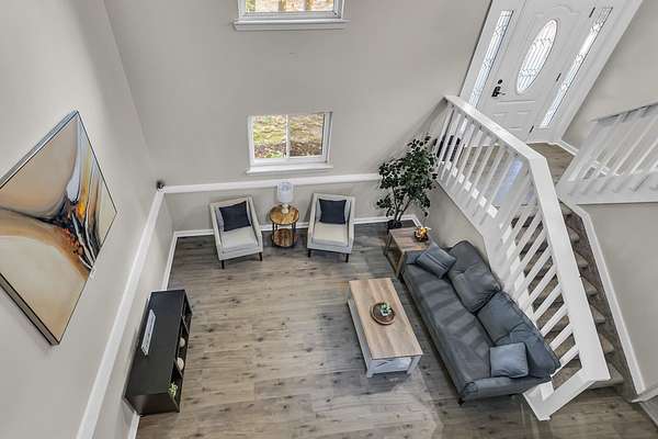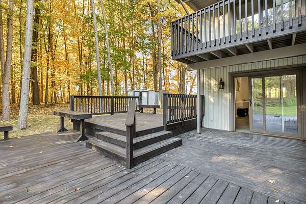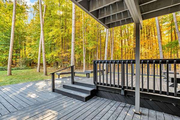 Est $2,115/moThis wonderful 5 BR 2 BA home sits nestled in a private and beautiful wooded setting of 2 acres. Kitchen has gorgeous cabinets, island, and spacious open dining area. Open great room has tall ceilings with a ceiling fan and loft area overlooking. Second floor has a balcony off of loft area, perfect for sitting area or office space. This home has large bedroom sizes, some having ceiling fans and/or double closets. Entertain or relax on the large multi level deck off the back of the home with peaceful and serene wooded setting overlooking the pond. Storage Shed. Updates include a new flooring and paint throughout.
