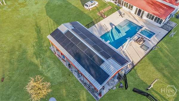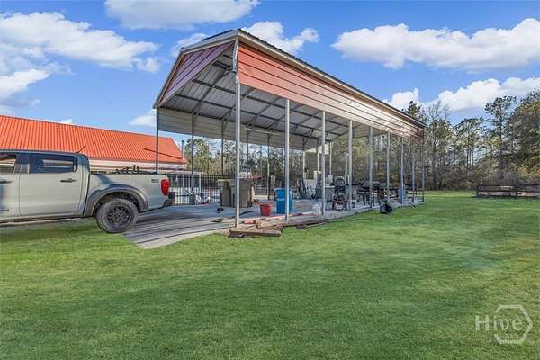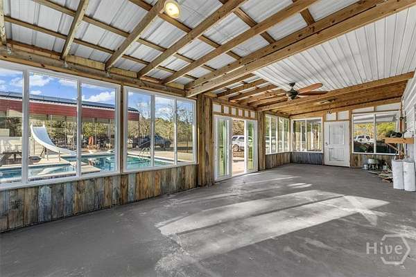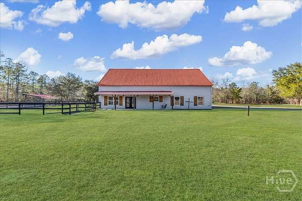 Welcome to 4042 Courthouse Road in beautiful Guyton, GA - a stunning modern farmhouse retreat set on 6.05 serene acres. Built in 2018, this 3,600 sq. ft. home blends country charm with modern luxury, offering 5 spacious bedrooms and 3 full baths. Set far back from the road, privacy and peace abound as you enjoy wide open spaces and the sounds of nature. The property is zoned agricultural, giving you the freedom to embrace a true farm lifestyle - whether that means raising animals, gardening, or riding horses. A large barn with four horse stables sits just behind the home, perfect for equestrian enthusiasts or anyone seeking extra storage or workspace. Out back, a resort-style oasis awaits. An in-ground pool and hot tub create the ultimate relaxation zone, surrounded by scenic pasture views. The 20-foot-high carport offers plenty of space for equipment, RVs, or large vehicles. Modern upgrades make this property both efficient and worry-free: a Generac whole-home generator ensures continuous power, and 46 paid-off solar panels (transferring to the new owner) drastically reduce energy costs. This is more than a home - it's a peaceful, self-sustaining escape that blends country living with modern convenience. Experience the tranquility and freedom of life at 4042 Courthouse Road.