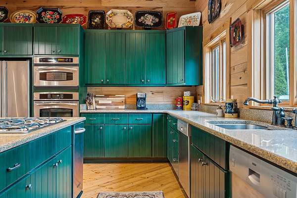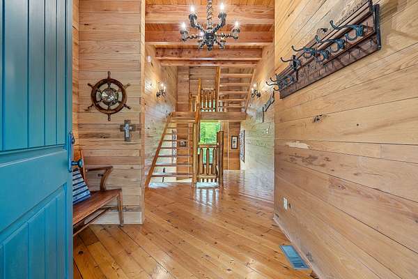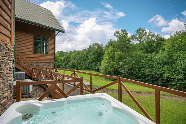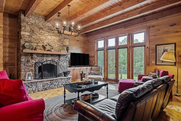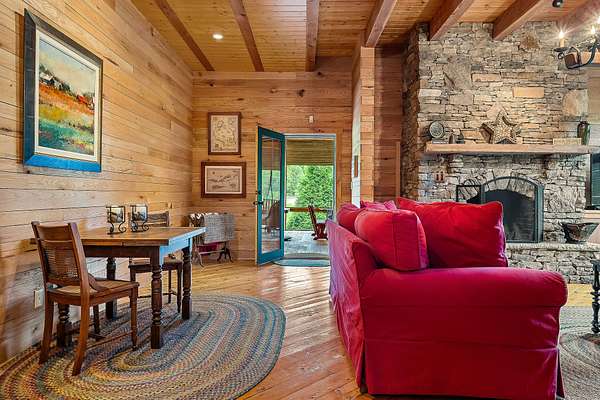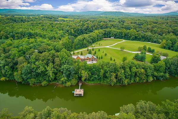 Rustic Luxury on the Rocky River - Discover the perfect blend of refined living and natural beauty in this one owner custom-built 5,600 sq. ft. waterfront retreat, nestled within the highly sought-after Rock Island Farms boutique community. Set on 5 nature-oriented acres, this extraordinary property boasts approximately 570 feet of gentle water frontage along the picturesque Rocky River, complete with private double-tier dock (two boat lifts and jet ski port included) for effortless access to boating, fishing, and river adventures. Rustic elegance takes center stage with warm wood finishes, soaring ceilings, and two magnificent stone fireplaces anchoring the home's inviting indoor and outdoor gathering spaces. Designed for hosting family and friends, the home features four private en suite bedrooms plus two expansive bunk rooms--each sleeping 9 and offering its own en suite bath. Cozy screened porch overlooking the water invites year-round enjoyment, while multiple decks provide an abundance of outdoor living space. Built with enduring craftsmanship, this home rests on solid poured concrete foundation walls and includes a storm shelter/storage space, oversized two-car garage designed to accommodate boat and watercraft storage, and thoughtful touches throughout blending comfort with durability. Whether seeking a weekend escape or a long-stay sanctuary, this rare offering delivers the ultimate remote getaway--less than two hours from Nashville--with every amenity for both relaxation and recreation. Conveying fully furnished and turnkey for a seamless waterfront lifestyle transition (small personal exclusion list applies).