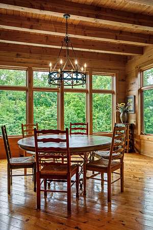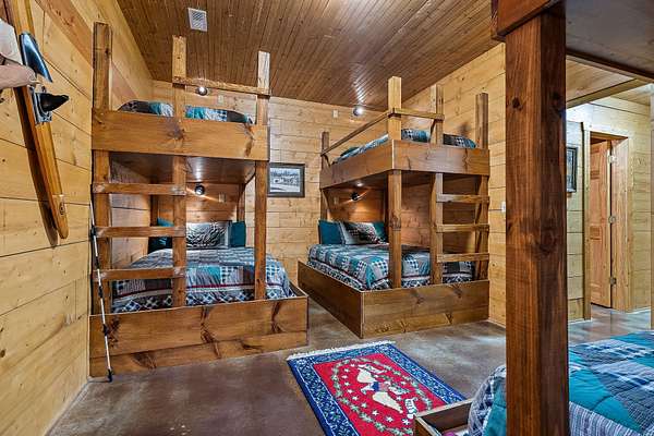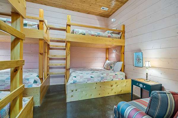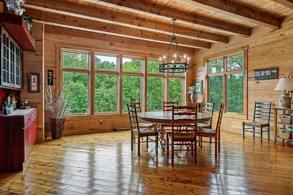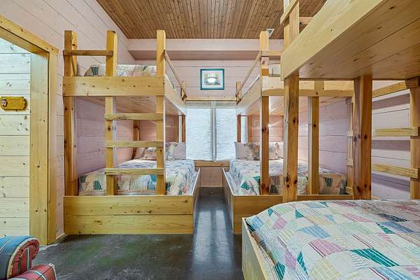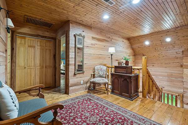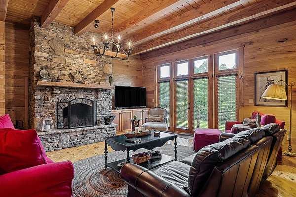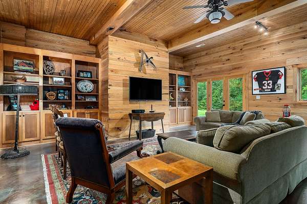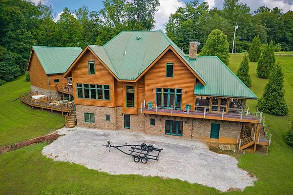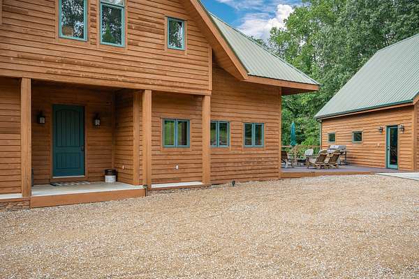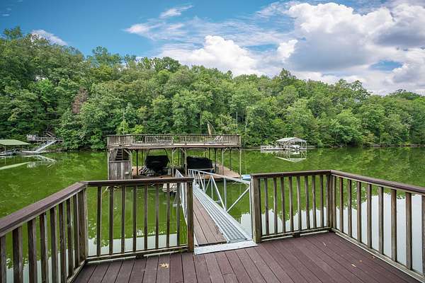 Rustic Luxury on the Rocky River - Discover the perfect blend of refined living and natural beauty in this one owner custom-built 5,600 sq. ft. waterfront retreat, nestled within the highly sought-after Rock Island Farms boutique community. Set on 5 nature-oriented acres, this extraordinary property boasts approximately 570 feet of gentle water frontage along the picturesque Rocky River, complete with private double-tier dock (two boat lifts and jet ski port included) for effortless access to boating, fishing, and river adventures. Rustic elegance takes center stage with warm wood finishes, soaring ceilings, and two magnificent stone fireplaces anchoring the home's inviting indoor and outdoor gathering spaces. Designed for hosting family and friends, the home features four private en suite bedrooms plus two expansive bunk rooms--each sleeping 9 and offering its own en suite bath. Cozy screened porch overlooking the water invites year-round enjoyment, while multiple decks provide an abundance of outdoor living space. Built with enduring craftsmanship, this home rests on solid poured concrete foundation walls and includes a storm shelter/storage space, oversized two-car garage designed to accommodate boat and watercraft storage, and thoughtful touches throughout blending comfort with durability. Whether seeking a weekend escape or a long-stay sanctuary, this rare offering delivers the ultimate remote getaway--less than two hours from Nashville--with every amenity for both relaxation and recreation. Conveying fully furnished and turnkey for a seamless waterfront lifestyle transition (small personal exclusion list applies).