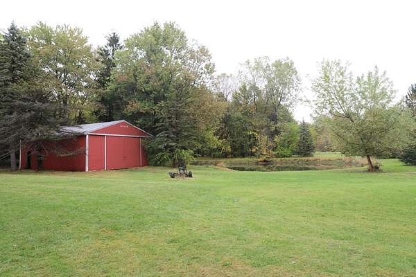 Sprawling ranch to discover on this beautiful 18.9 acres boasting frontage and driveways on both Farrand and Jennings Rd. Enjoy a spacious family room with a cozy fireplace and cathedral ceiling large sunroom with plenty of natural light. The primary bathroom is enhanced by a walk-in whirlpool tub. The updated island kitchen features Kraftmaid oak cabinets, granite countertops, pantry with pullout drawers and all appliances included. The nearly 19 acre setting has lots of cropland, woods, and wildlife galore. The stocked spring fed pond is surrounded by 2 sheds and 2 pole barns 40x37 and 40x30 with electric. Perfect for nature lovers, hunters, and hobbyists alike. $3,000 paint/flooring allowance by seller. 18.99 acres wraps around on corner of Jennings Rd. and goes north to 13105 N. Jennings Rd.