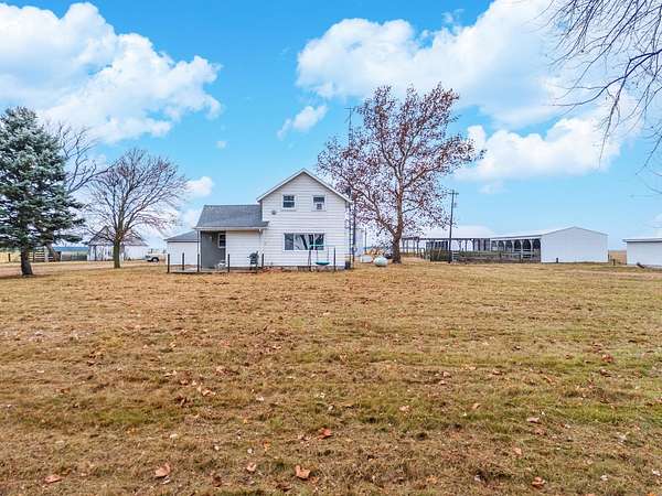 Welcome to peaceful country living meets practical farm life! This spacious home offers over 1,800 sq ft, featuring 3 bedrooms with the potential for a 4th (den), and 2.5 bathrooms. The main level includes a bedroom and a flexible den space that could serve as a guest room or office. Enjoy a roomy dine-in kitchen, family room, and living room, providing plenty of space for comfortable living and entertaining. Outside, you'll find everything you need for your country lifestyle! The property includes a 2-car detached garage, whole-farm generator, and multiple functional outbuildings - including two cattle sheds, a hay shed, a hog confinement shed with pit, a 36x46 machine shed, and a grain storage bin. With beautiful open pasture, this property offers endless opportunities for livestock, gardening, or hobby farming. Recent updates include some newer flooring and windows installed within the last 3 years. Whether you're dreaming of your own homestead or seeking an investment property with agricultural potential, this farm is ready to make your country dream come true! Property is being Sold "As Is"
