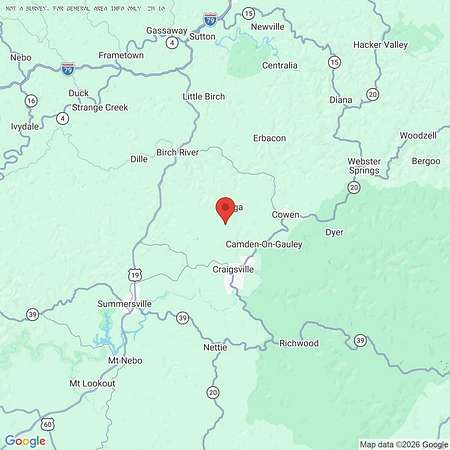 Starting at Summersville depart onto Main Street for 0.17 miles; turn left onto Webster Road for 1.25 miles; continue right onto West Webster Road for 0.32 miles; turn left onto US 19 for 1 miles; turn right onto Webster Road for 10.3 miles; turn left onto Tioga Road for 3.58 miles; arrive