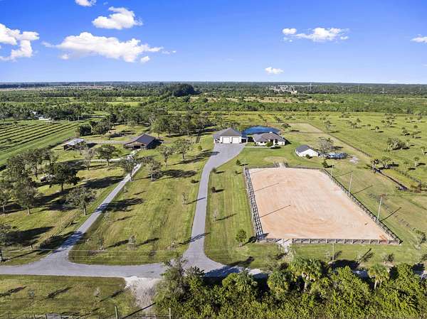 Experience the ultimate blend of luxury living and equestrian excellence on this stunning 36+/- acre privately gated estate in North St. Lucie County. Perfectly positioned between Fort Pierce & Vero Beach with convenient access to both I-95 and the Florida Turnpike, this 2023 custom-built home showcases every upgrade imaginable, including three master suites and the flexibility to increase or reduce the acreage to suit the buyer's needs. Designed for the serious horse enthusiast, the property features multiple barns, 6-stall barn with living quarters, a round pen, hot walker, fenced and cross-fenced pastures, a lighted arena and 2 artesian wells. For those seeking exceptional functionality, the estate also includes a 4,680sqft CBS shop plus covered RV and trailer storage areas, creating the perfect setup for equipment, vehicles, and hobby needs. A private pool completes the resort-style ambiance. A property of this caliber is truly one-of-a-kind. Nothing compares to the comfort, privacy, and versatility this equestrian estate delivers.