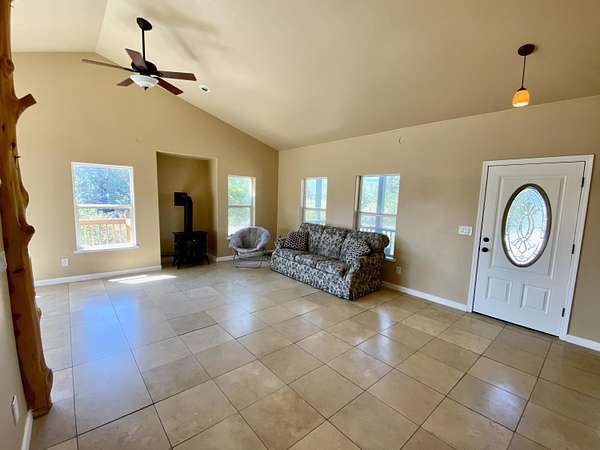 Tucked away on 10.66 acres in a gated, private setting, this beautifully maintained 3-bedroom, 2-bath home offers 1,471 sq ft of bright, open living space, plus an attached 2-car garage. Designed for comfort and style, the home features soaring ceilings, large windows that flood the space with natural light, and elegant heated travertine tile flooring throughout.