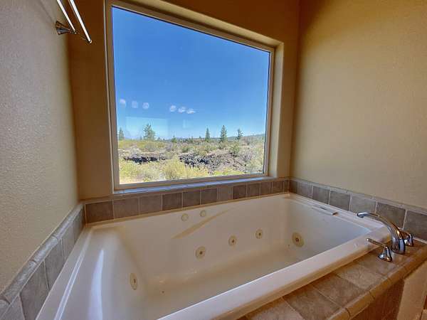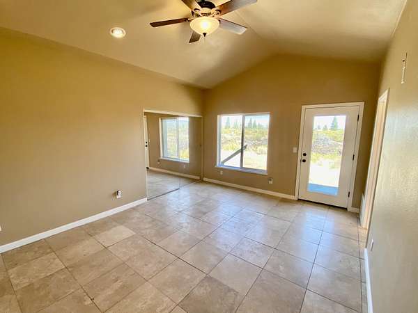 Enjoy sweeping sunset vistas from the open back deck or relax on the covered front porch surrounded by the property's unique volcanic landscape and natural beauty.