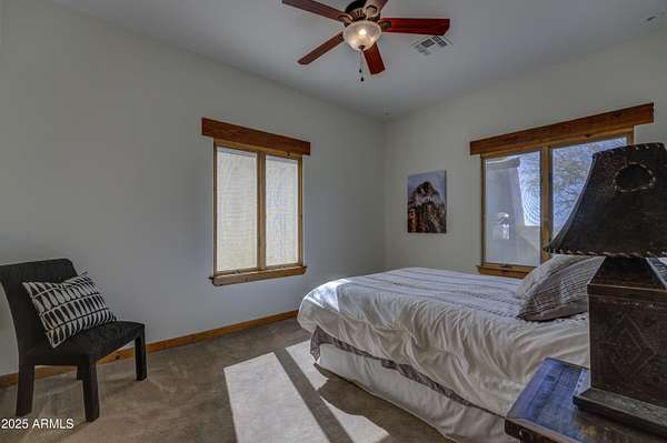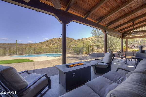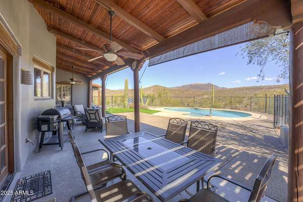 LUCKY 7.77 ACRES -PRIVATE VALLEY HORSE PROPERTY BACKING TO OPEN DESERT Recently upgraded & tucked into a quiet valley setting, this rare Cave Creek property offers the kind of privacy, views, and access to nature that buyers are searching for -- with Cave Creek Regional Park and Tonto National Forest right at your back yard. Set on approximately 7.77 acres (two parcels), this inviting 3-bedroom, 3-bath home offers a warm, welcoming feel with thoughtful spaces for both everyday living and entertaining. A cozy library with custom rock fireplace and built-in shelving creates the perfect retreat, while a built-in bar adds a touch of fun for hosting friends and family. This was designed with horse owner in mind but barn can easily be converted to a shop or car collectors garage. Owner designed with horse owners in mind but could have many other uses. For equestrians, the property features a mare motel with turnouts and ample room to expand into a larger equestrian setup. Whether you're a casual rider or looking to build out a more extensive facility, the land, layout, and location offer exceptional flexibility. Owned solar adds efficiency and value, while the natural desert surroundings provide breathtaking views, abundant wildlife, and a true Arizona lifestyle experience. This is more than a home -- it's a private desert retreat with room to grow, ride, and enjoy the best of Cave Creek living.