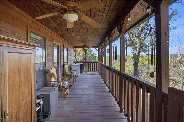 Are you looking for a community in the country? A community filled with scenic views, lakes, and wildlife? Then look no more and welcome to your new home! Down to earth luxury, peacefully situated. A perfect home for those who want acreage, amenities and all that Mountain Lakes Ranch has to offer. 5-acre property comes with a gazebo, storage shed, wildlife observatory and large covered deck with ceiling fans, perfect for enjoying nature. The heart of the home is spacious, bright, ideal for gatherings. Hardwood laminate flooring welcomes you throughout the open floor plan. Cedar accents throughout the home give it a real lodge or western feel. Classic white shaker cabinets, stainless steel appliances, a big kitchen island add a modern update to the rustic feel. Vaulted ceilings and built in shelving give the primary bedroom an extra touch of elegance, the rolling library ladder adds a touch of old world craftmanship. The 4 windows in the primary bedroom provide a scenic overlook of the property and a peaceful escape from city life. The back porch makes a wonderful retreat to relax and reflect. Property includes 2 large outbuildings that can be used for multi-purpose. The Gazebo is nestled under the trees and provides a great place to gather. Stay warm and dry in the wildfire observatory- deer blind while observing the wildlife. The utility room off the kitchen has a built in doggie door to the fenced front yard, providing a safe and effective way to care for your pets. All Measurements and dimensions are approximate and deemed to be reliable, but are not guaranteed, and should be verified by the buyer. (Property Includes gazebo, picnic table, browning smoker, wildlife observatory- deer blind). American Home Shield warranty is transferrable. Additionally there is a transferrable Aerobic Septic Service Contract valid through Jan 2027.