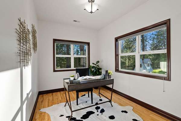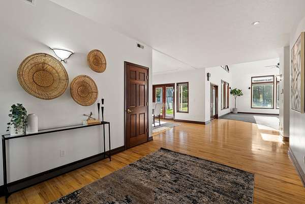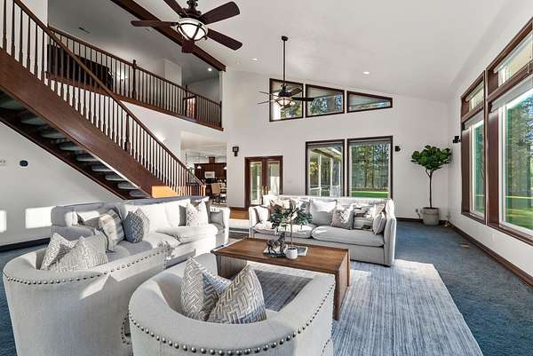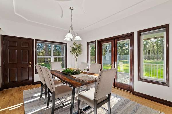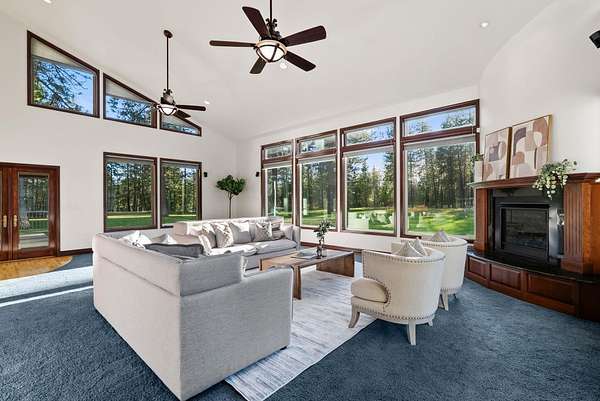 No expense was spared in this exquisitely appointed two-story home in Loon Lake-perfect as a luxury residence, wedding venue, reunion retreat, or Airbnb. Enjoy lake life and nearby fishing from this thoughtfully designed property. The gourmet kitchen features solid cherry cabinetry, a 5-burner gas cooktop, double ovens, and pot filler. Radiant natural gas floor heating, solid maple hardwoods, cherry Pella doors, and a central vac system add comfort and style. The wraparound covered porch with heated stamped concrete, lighting, outlets, and BBQ hookup is ideal for year-round entertaining. Inside, the grand family room includes power blinds and a gas fireplace, while the soundproof theater room offers the ultimate entertainment. The luxurious primary suite boasts a fireplace, walk-in closet, and spa bath. A heated 3+ car garage, 34x40 shop with bath, 400 amp service, RV hookup, 30+ GPM well, garden, and more complete this incredible 5-acre property.