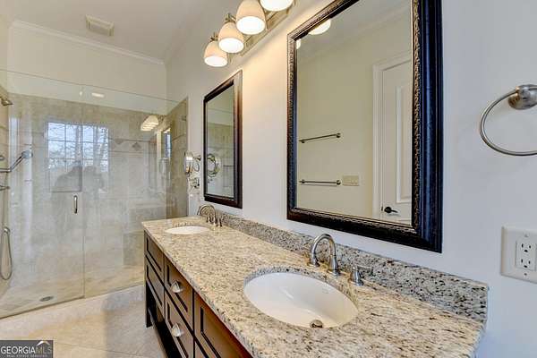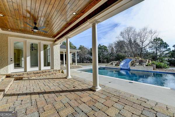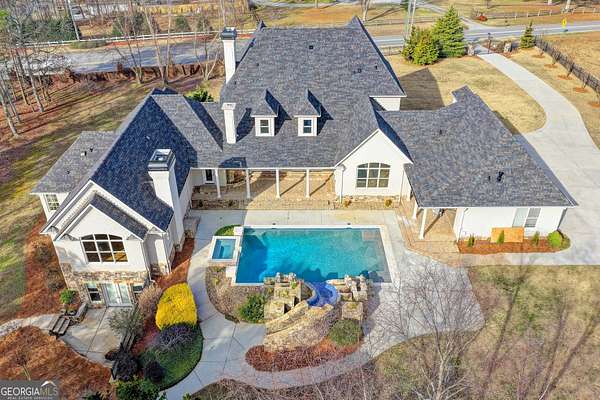 Exceptional Acreage Estate in perfect Buford location. No HOA! Welcome home to this private gated All Brick Estate Home nestled on 1.96 acres w/exquisite poolside with waterfalls/slide outdoor kitchen and covered patio w/outdoor FP perfect for entertaining. Walk through the front door and find a formal dining room seating for 12+, living room with coffered ceilings and light filled spacious spaces perfect for entertaining and comfortable living. All hardwoods on main, GR w/soaring ceilings, FP and built in bookcases. Chefs Kitchen with dream Viking appliances. Subzero refrigerator, Large center island is the focal point with keeping room over looking breathtaking backyard, Butler's walk-in pantry & granite counter tops. Other main features include dog bath, Mud room w/storage, Extra wide hallways, soaring ceilings, heavy trim package and upgraded fixtures throughout. Master on main features a FP, wet bar with wine cooler. His/Her luxury walk-in closets w/center island, His/Her Master spa baths (Yes! 2 adjoining master baths!) Jacuzzi tub & dual rain shower. Guest suite with ensuite full bath on main, You'll find another full bath on main that has entrance to pool area, powder room and walk-in laundry with utility sink and tons of cabinets. Recessed lighting throughout main level. On upper level you'll find 3 bedrooms (or you can use one as study or bonus room) and 2 ensuite full baths including a 2nd laundry. All new upgraded carpets in guest bedrooms upstairs. The full terrace level with stubbed bath is Hugh and waiting on your personal finishes for future finished space. The icing on the cake is the over-sized 4-car side entry garage with storage. Home sits off road and very private. A rare opportunity to own an established well loved and maintained home in great Buford location thoughtfully designed for both everyday comfort and exceptional entertaining.
