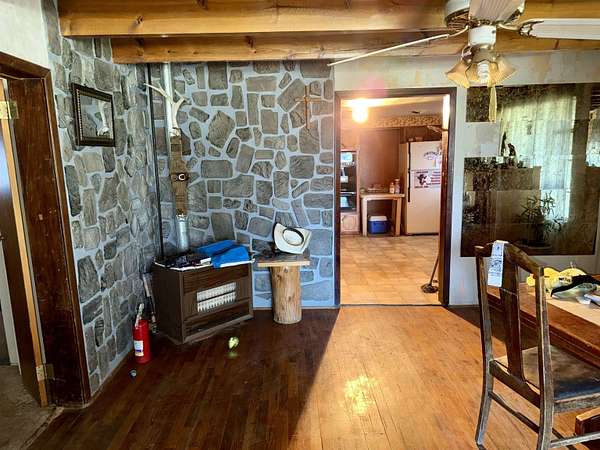 Perfect opportunity for income potential with a main home (2,208 sq. ft.), guest house (912 sq. ft.), studio attached to a garage (1,381 sq. ft.) and a workshop that could be converted (831 sq. ft.) All square footage is approximate. The main home was built in the 1950s and added onto many times. It has 4 bedrooms/2 full bath rooms and two extra rooms for storage and a foyer. Attached carport for your car. The storage room is located in the back of the home and the foyer is off the kitchen (both not pictured). The property has been maintained as much as possible but could use some love to spruce it up a bit. A total of 2.401 acres and 1.15 acres of water rights allow for agricultural use in the backyard. Shade trees throughout the property create privacy, temperature control and a beautiful yard. The properties are hooked up to community water and septic. Sewer lines run along the highway if hook-ups are necessary. The guest house is modular, it has a dog run and two sheds in the back, as well as a porch. The garage needs the most work and has a studio apartment built into it. The well resides in one of the rooms in the garage and may still be set up for agricultural use. There's a workshop also known as Wild West Trading Co. closest to the highway. This property encompasses possible wealth for its new owner after being worked on a bit. Property is being sold as is. Please reach out for any further questions.