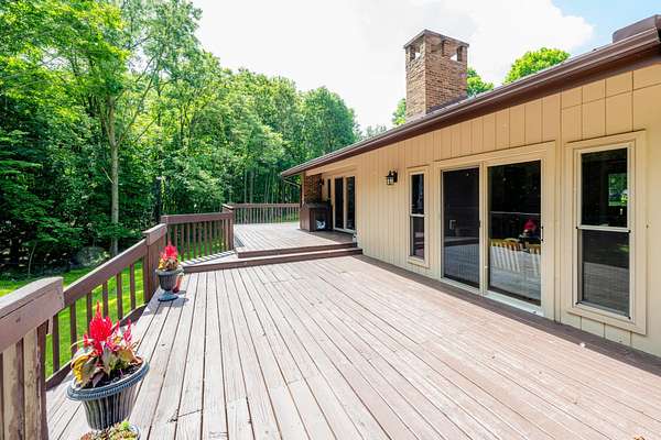 This 4 bedroom 5 bathroom home has over 5,300 total sq ft & 3 fireplaces! Beautiful hardwood floors in living room, dining room, kitchen & primary bedroom. Lg kitchen w/breakfast nook; the windows provide a lot of natural sunlight & overlook picturesque nature in the backyard. Separate dinning area w/sliding glass door to the large deck. Extensive primary bedroom w/walk-in closet, en suite & sliding door to the backyard deck. The downstairs has a full kitchen, a bedroom, half bath, family room, rec room, bonus room, & indoor pool; prefect for out-of-town guests & in-laws. The large pool area has private full bath. All pool mechanics (pump, filter, pool heater, pool room heater) were replaced in 12/21. Ayres basement system. Spacious 3 car garage.