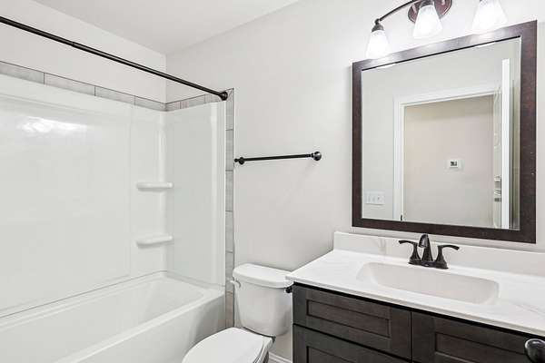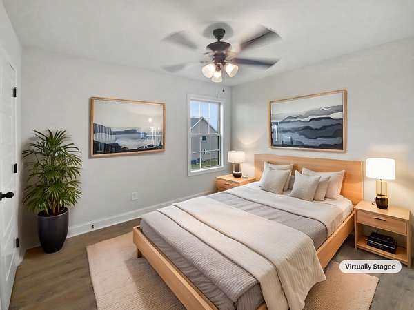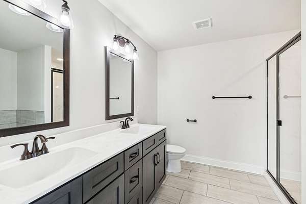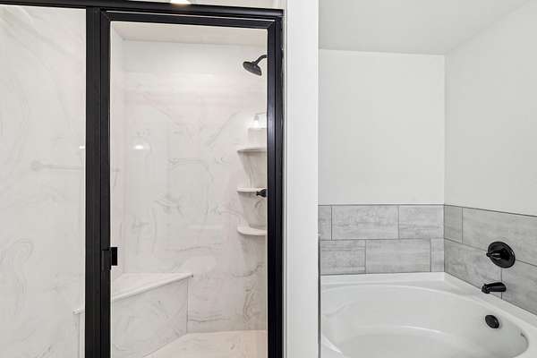 The spacious primary suite includes a luxurious marble shower and a separate soaking tub for ultimate relaxation. Upstairs, you'll find the laundry room conveniently located near the bedrooms. The secondary bedrooms are generously sized, offering comfort and flexibility for family or guests.