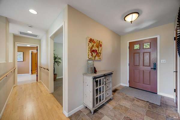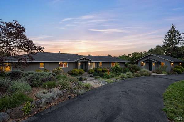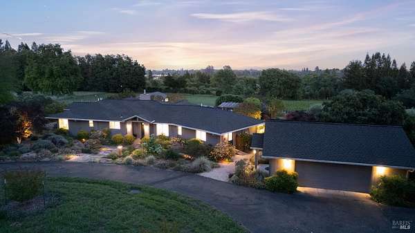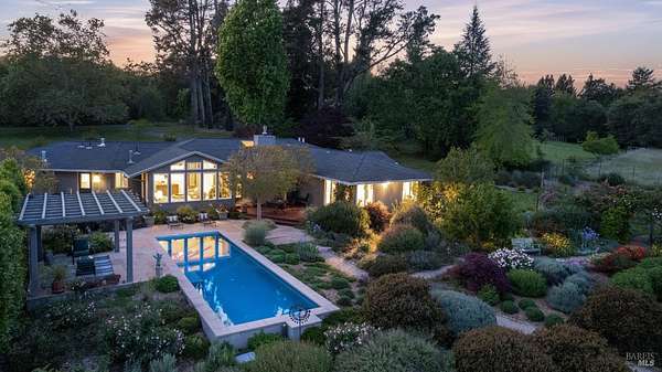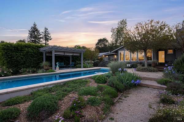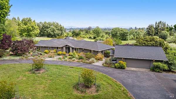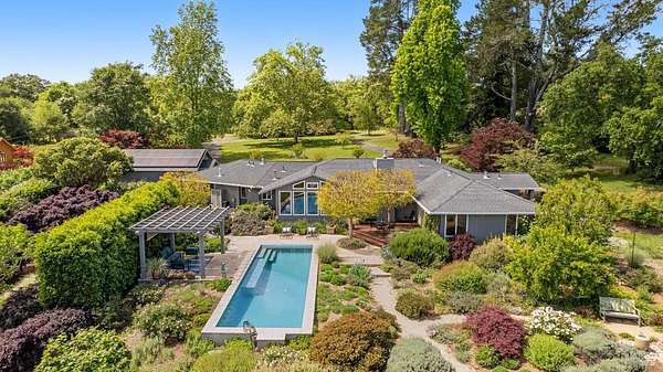On a serene 2.38-acre parcel in the gorgeous Sebastopol countryside rests this beautiful home embraced by a magnificent garden with stunning views. There's beauty all around - every window looks out at loveliness! The garden was born of a desire to create an outdoor space permeated with peace, beauty and harmony and was designed and built by noted Sonoma County landscape architect Steve White. Add a pool and a deck made of Ipe, a Brazilian hardwood, and the result is an oasis with both aesthetic appeal and opportunity for entertaining. The home features a great room concept and a kitchen with granite counters and a 5-burner stove with downdraft range hood. An inviting library separates the primary and 2nd bedroom. Then there is an office and a large 3rd bedroom that could be used as a studio or hobby room. This sunny and completely usable lot has a large circular driveway and additional open space for anything you want to create or grow. An oversized 2-car detached garage and a 480 sqft shop offers additional space for anything you desire. This gardener's haven also boasts a separate vegetable garden with large raised beds and a 2nd well with storage tank for irrigation. To top it off, the owned solar system with battery backup and EV charging station falls under the advantageous NEM2 program. Located on a quiet private lane in the desirable West-County Banana Belt, this home offers serenity while being just 5 minutes from shopping and dining in the charming town of Graton.