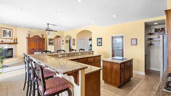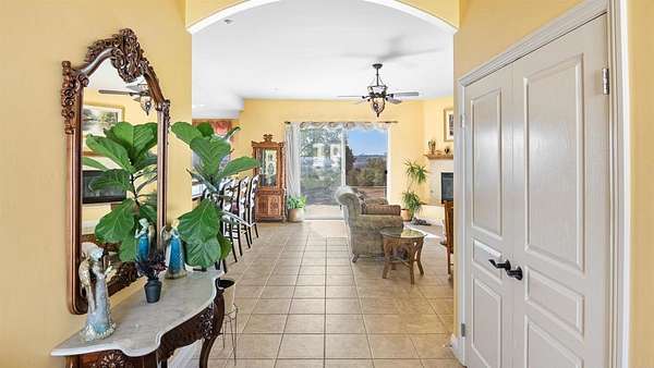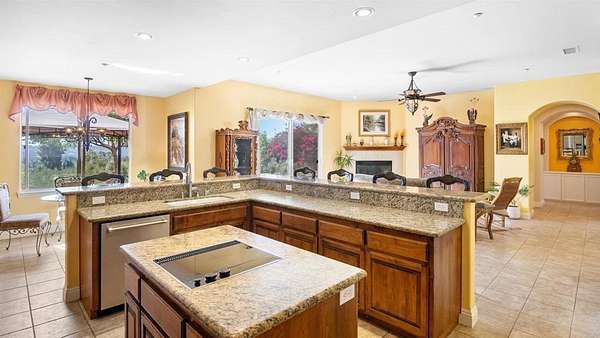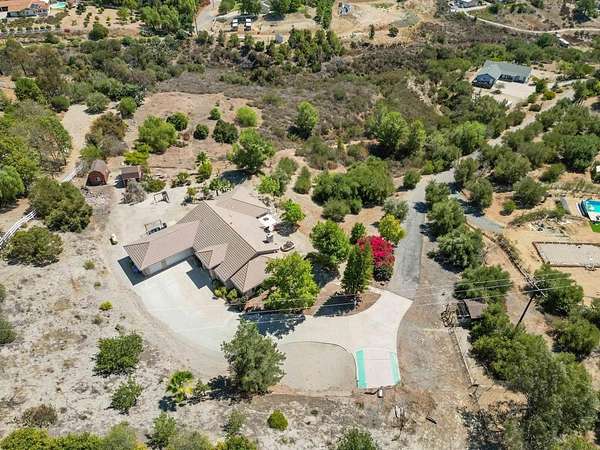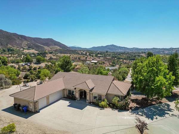 Nestled in the scenic hills of De Luz, just minutes from town, this beautiful single story home offers 2900 sq ft of open living space with four bedrooms and three bathrooms. The inviting kitchen is the heart of the home, featuring granite countertops, abundant cabinetry, a center island, and a butler's pantry with custom bar shelving. With plenty of seating at the counters and breakfast area, it's perfect for gathering with friends and family. Additional spaces include a private home theater, office, and library. The primary suite offers a luxurious bath with soaking tub and walk-in closet, while a secondary en-suite bedroom provides comfort for guests or extended family. Generously sized bedrooms and large windows throughout create a bright, inviting atmosphere. Outdoors, enjoy orange, lemon, grapefruit and loquat trees, a thriving olive grove and plenty of space for RV parking, recreational toys, or creative use. Located at the end of a quiet road, this home combines seclusion, convenience, and charm.