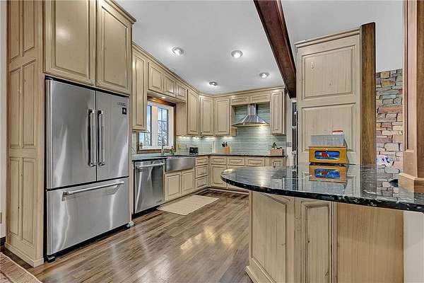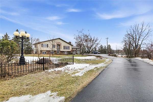 Welcome to peaceful country living just outside Melrose on 6.28 scenic acres. This spacious 4-bedroom, 2-bath home offers 2,404 finished square feet with a layout that blends comfort, functionality, and modern updates. The beautifully updated kitchen is a standout - featuring stainless steel appliances, a trendy hood fan, farmhouse sink, granite countertops, modern backsplash, and abundant cabinet space. A peninsula island provides extra prep and seating space, while the window over the sink offers picturesque views of the surrounding property. The dining room impresses with a stunning built-in hutch that includes drawers, cabinets, glass display shelving, and built-in wine storage—all perfectly matched to the kitchen cabinetry for a cohesive, high-end look. Just off the dining room, the four-season sunroom/porch is wrapped in windows on three sides, flooding the space with natural light and creating the perfect spot to relax year-round. The living room offers a cozy fireplace and a large picture window for even more sunlight. Three bedrooms and a bathroom are conveniently located on the main floor. The lower level adds valuable living space with a family room, additional bedroom, bathroom, ideal for guests or flexible living needs. Outside, enjoy excellent curb appeal with decorative wrought iron fencing, stone retaining walls, and pillar accents along the driveway. The property includes an attached two-stall garage plus two additional outbuildings, offering plenty of storage and space for hobbies or equipment. Adding to the charm of the acreage are several apple trees and a pear tree, with the apple trees having produced well in past seasons—perfect for those who enjoy fresh fruit right from their own yard. A rare combination of acreage, updates, and charm—this is country living at its best! Schedule to see this one today!