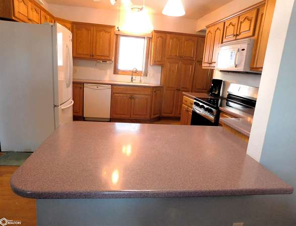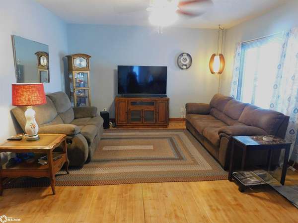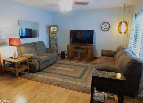 This peaceful 2 acre property is located in city limits and just a block from the school. Spacious ranch home offers so many features - large living/dining room with pellet stove for extra heat and patio doors to the front deck. It also opens to the kitchen every cook will love with TONS of cabinets/pantry, appliances and eating bar. There is main floor office area that leads down the hall to 3 spacious bedrooms, large bath w/jet tub & separate shower and laundry room. Off the kitchen is a back hall with the 2nd bathroom and access to the large 24x30 attached garage. The basement has a cool domed brick room which would be a fun wine cellar. Also storage and a 2 car built-in garage with heater. Outside consists of fenced pasture area, 2 sheds and hydrant. Plenty of room for that hobby farm, garden or room to roam. Call today.