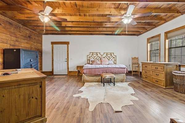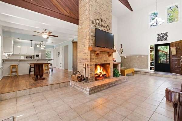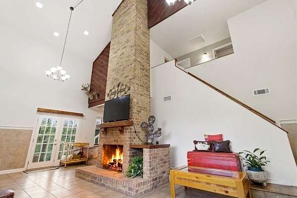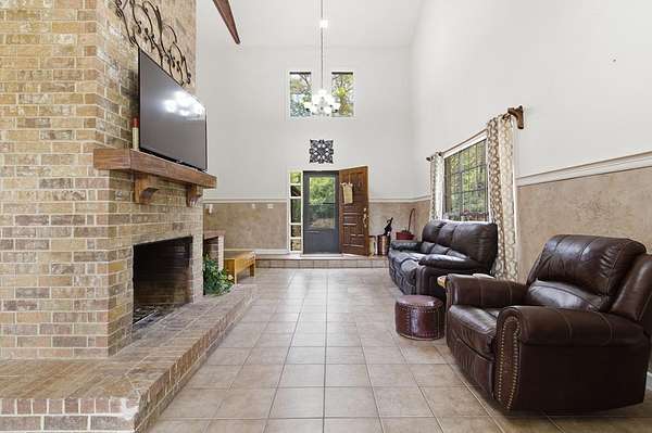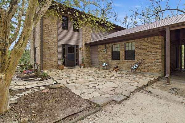 Rare opportunity to own 8.48 acres in highly sought-after Hudson ISD. This 3-bedroom, 3-bath home offers a functional layout with the primary suite and a bonus room downstairs and two bedrooms upstairs, including one with a private en suite. The living space is anchored by an approximately 18-foot-tall wood-burning fireplace and includes features such as quartz countertops, breakfast bar, exposed beams in the master, and a plethora of windows providing plenty of natural light. A full-length, double story porch spans the front of the home, overlooking the woods and circle driveway. Step outside and it's all about the land: a beautiful mix of open pasture and wooded privacy, a winding creek, partial fencing, ample tool storage, and a powered carport/shop with roll-up door, perfect for equipment, animals, or simply enjoying the freedom of quiet living. With acreage, location, and usable improvements, this property delivers a lifestyle you won't find often in Hudson ISD.