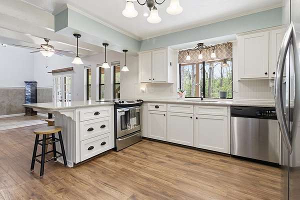 - Blinds, Breakfast Bar, Ceiling Fan(s), Pantry, Primary-Lower Level, Smoke Detectors, Split Bedrooms, Vaulted Ceiling(s), Walk-In Closet(s)
