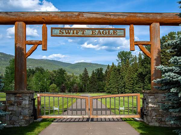 Whitefish Lake Dream! Swift Eagle Ranch is one of the most extraordinary legacy offerings on Whitefish Lake. Spanning 35 acres with 550+ feet of pristine lake frontage, this property rests at the headwaters, capturing sweeping southern-facing views across the water. Swift Creek traces the property's north and east edges, flowing toward a serene pebble beach and creating a calm lakeside setting. Lush, tree-lined meadows, spring-fed ponds, winding streams, and mature forested grounds shape a landscape that feels both private and timeless. The centerpiece of the property is an authentic Swedish cope log home, complemented by a beautifully renovated two-bedroom guest residence. Rich wood accents throughout the main home capture authentic Montana character and are highlighted by a spacious great room with a dramatic stone fireplace, an inviting island kitchen, and a generous dining area. The primary suite offers superior views of both the lake and creek, while the upper level includes two additional bedrooms. The newly updated guest home provides luxurious accommodations for family and friends. With a 10-bedroom sanitation allowance, the estate offers opportunities for future expansion or additional structures. Outdoor amenities include a deep-water mooring dock with electrical service and boat lift, an equestrian training arena in the meadow, and nearly half a mile of Swift Creek, a major tributary to Whitefish Lake, perfect for easy-access fly fishing. All just 20 minutes to downtown Whitefish, Whitefish Mountain Resort, and 40 minutes to Glacier Park International Airport, Swift Eagle Ranch embodies the ultimate Whitefish Lake retreat, an irreplaceable legacy property of unmatched scale, beauty, and privacy for future generations to come.