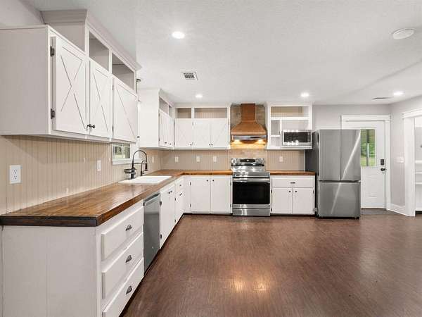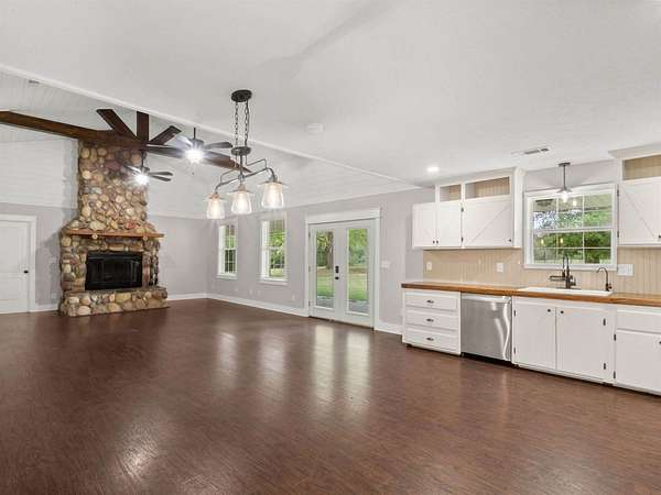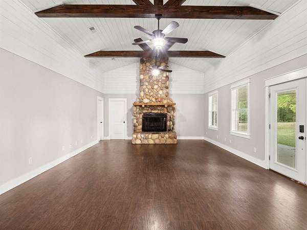 Seclusion at its finest! Located in the desirable Rosepine School District, this beautiful 3-bedroom, 2-bath home sits on over 46 acres at the end of a quiet dead-end road, offering privacy and peaceful country living.The home features an open floor plan with a cathedral ceiling in the living area and a large stone fireplace as the focal point. Bedrooms are generously sized, and the spacious primary suite includes a large walk-in shower and soaking tub.Approximately 8 acres of the property are cleared and fenced, making it ideal for livestock or recreational use. Additional improvements include a 40x60 shop and a small barn.This property offers a rare combination of acreage, functionality, and comfort--perfect for those seeking space and privacy.