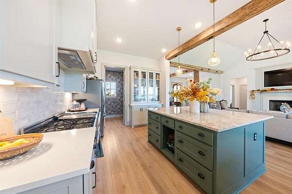 - Cable TV Available, Decorative Lighting, Eat-In Kitchen, Flat Screen Wiring, Granite Counters, Kitchen Island, Natural Woodwork, Open Floorplan, Pantry