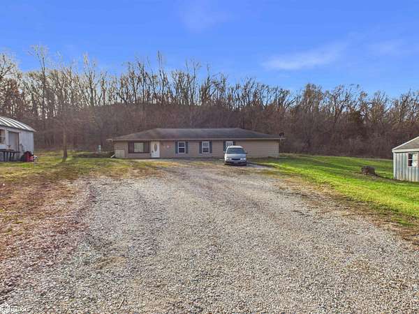 Welcome to this spacious and versatile 2,100 sq. ft. ranch home offering the perfect blend of comfort, functionality, and outdoor living. Featuring 4 bedrooms and 2 full bathrooms, including a private master suite with a large walk-in closet and its own bath. The thoughtfully designed layout offers an open-concept kitchen, dining, and family room-ideal for entertaining and everyday living-while a separate, oversized living room on the opposite end of the home provides additional space to relax. Sliding glass doors lead from the living room to a patio area, perfect for enjoying the peaceful surroundings. Situated on nearly 3 acres, this property offers beautiful tree coverage and plenty of room for kids, pets, or outdoor activities. Whether you're dreaming of adding a pool, building a garage, or simply enjoying the open space, the possibilities are endless. The property also includes two large outbuildings with cement floors. One building features multiple separate rooms and currently being used for storage but offering excellent potential for a variety of uses. The second metal building would make an ideal workshop, hobby space, man cave, or she shed. Enjoy the rare opportunity to live in town while experiencing the privacy and scenic feel of country living. This property truly offers the best of both worlds.