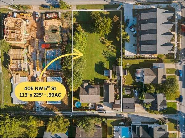 Rare redevelopment opportunity on a .59-acre lot in the heart of downtown Bentonville. This flat, 113' x 229' parcel offers dual access from NW 5th Street and rear alley--ideal for building a custom home, multiple structures, or adding value with short-term rental income. Just steps from Bentonville Square, Crystal Bridges, Razorback Greenway, schools, and bike trails. Existing 1BR/1BA cottage may serve as an ADU or income property while building. Detached garage, carport, pavilion, and fenced yard included. Also listed as RESIDENTIAL - MLS 1323906.
