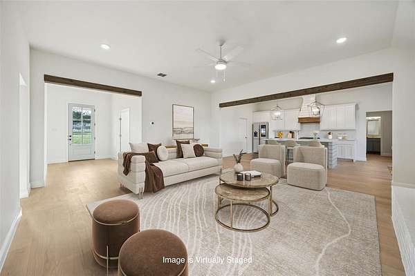 The private primary suite is thoughtfully tucked away, featuring a spacious walk-in closet and a luxurious en suite bathroom complete with a freestanding soaking tub, a separate glass-enclosed shower, and dual vanities. Whether you're starting your day or winding down, this serene space offers a perfect personal retreat. Additional highlights include neutral, modern finishes throughout, a thoughtful layout that maximizes functionality, and plenty of room on the expansive lot for future outdoor amenities--whether it's a pool, garden, or workshop. With its blend of newer construction peace of mind and classic ranch charm, this home is a rare opportunity to enjoy country-style living just minutes from city conveniences.