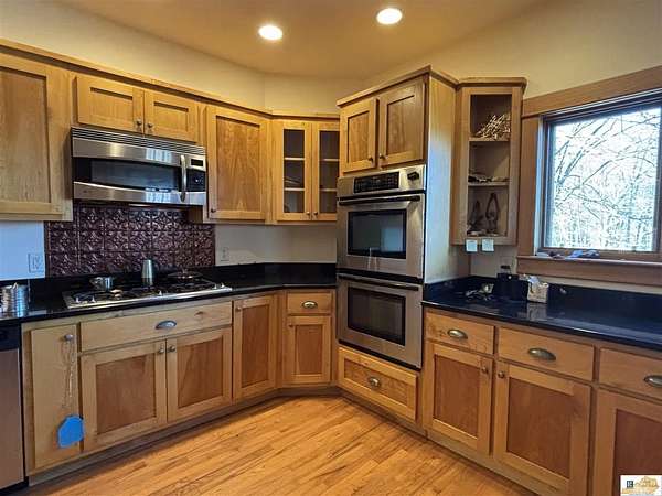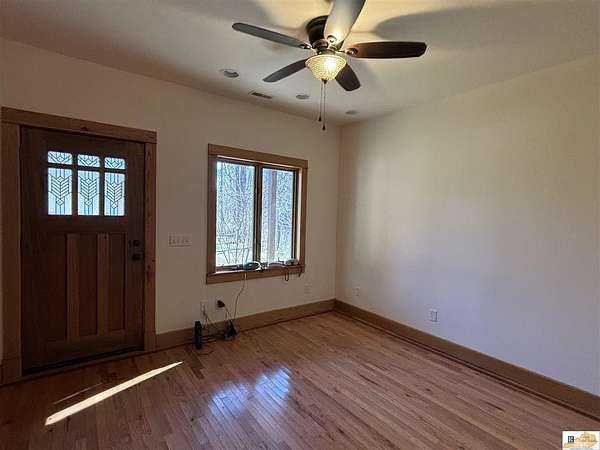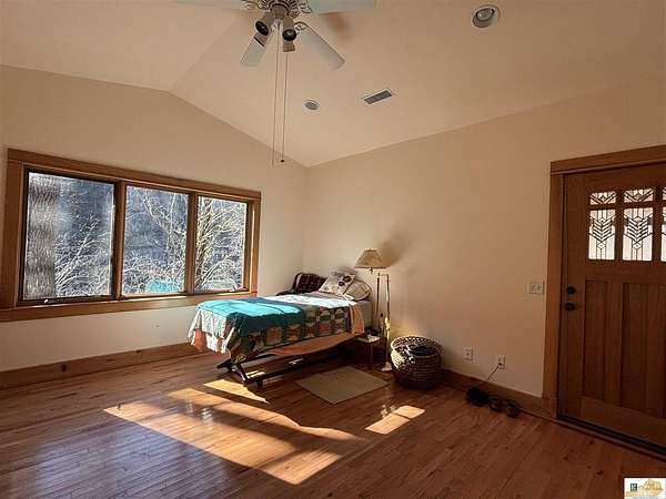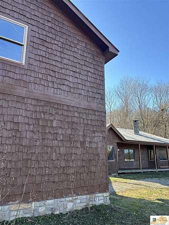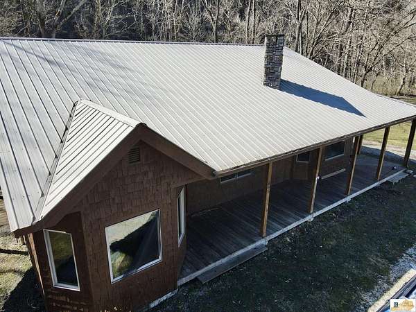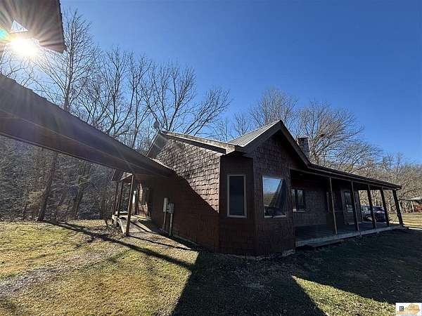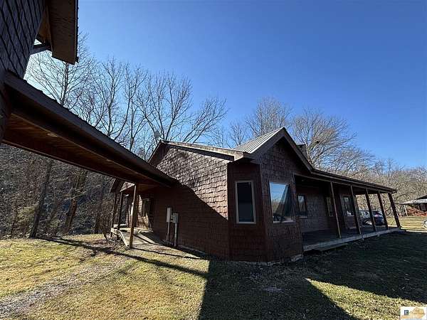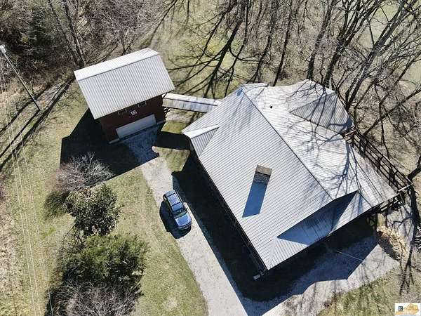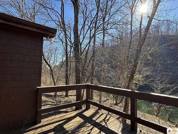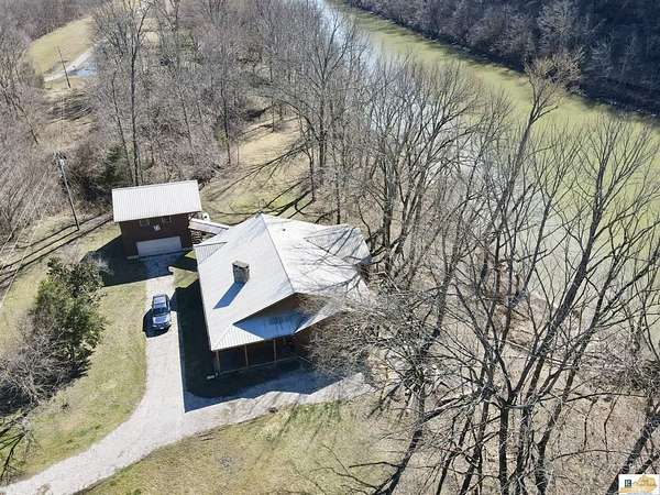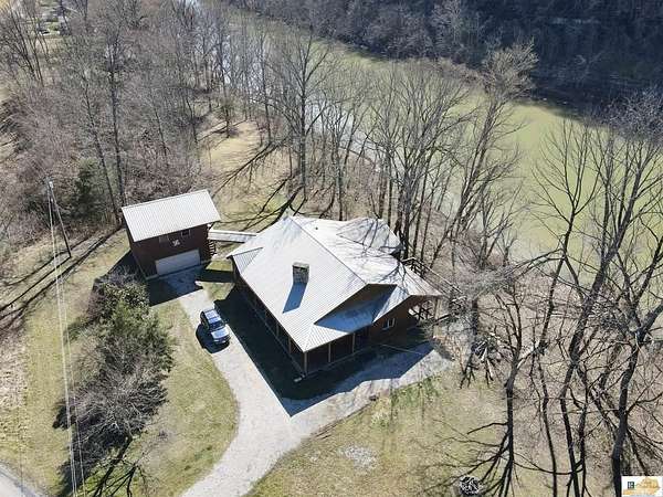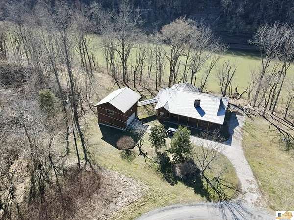 Located on the Cumberland River, this cedar-shingled home with unattached garage & finished loft space offers beautiful panoramic views of the south central Kentucky landscape. You can watch the river as you enjoy your morning coffee on the screened-in back porch, star gaze at night from anywhere on the 2-acre lot, or relax on the covered wrap-around front porch with views of farm fields and rolling hills. Designed with intention and rich in unique architectural elements, the home features: locally-harvested cedar on porch columns, ceiling, and in all closets; hand-milled oak on all indoor trim; craftsman-style hardwood exterior doors with beveled stained glass windows; oak hardwood floors with contrasting darker oak accent; custom-made cabinetry; stone hearth fireplace with cedar shelves; multiple bay windows; attic fan; craftsman light fixtures. In addition, there is also an unattached garage, connected to the home by a breezeway, that has concrete floors, exhaust fan, and overhead lighting. Stairs outside the garage lead to a 576 sq. ft. finished loft space featuring multiple windows, lighting, and ceiling fans. It's worth noting that while this unique property provides seclusion and privacy, you're still just about 20 minutes from the conveniences of Burkesville, Tompkinsville, or Celina. Adding to its distinct appeal, the home is located near the Cumberland River Ferry at McMillians Landing--Kentucky's only 24/7 state-owned and operated ferry.