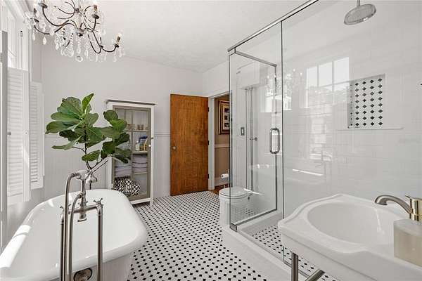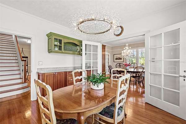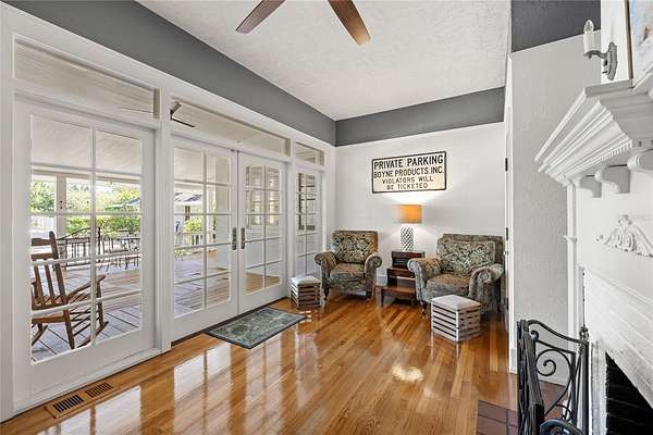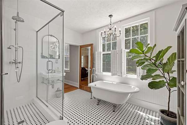 Welcome to this elegant, meticulously maintained historic estate in Ocala, where timeless character meets 2.46 acres of beautifully curated grounds, and is situated just blocks from the charm and energy of Historic Downtown Ocala. This location delivers a rare lifestyle balance: downtown’s restaurants, boutiques, and community events, then return home to your own private retreat framed by space and gardens. The property sits just outside the historic district, giving you the architectural charm buyers love, without the restrictions, so you have the freedom to enhance or expand the exterior over time. For equestrian enthusiasts or those drawn to Ocala’s global reputation, you’re only minutes from the World Equestrian Center. Inside, multiple living spaces are offered, including a formal dining room, a living room with fireplace, and an adjoining sunroom. A separate sitting room with its own fireplace opens to the outdoor patio and deck. Five sunrooms throughout the home flood the interiors with natural light. The custom kitchen offers solid wood cabinetry, granite countertops, a built-in refrigerator, gas range, two ovens, and microwave. A charming breakfast room, mudroom, and built-in office nook are situated off of the kitchen. The downstairs bedroom suite, complete with a private sunroom, features an updated bath with a walk-in shower and soaking tub.