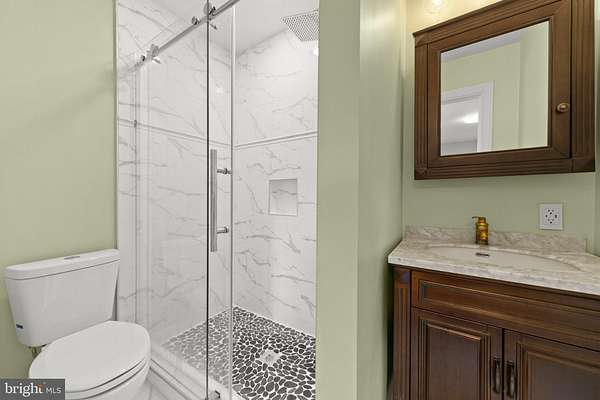 Meticulously Renovated Colonial on 2.15 Acres with In-Law Suite & Smart Features Welcome to this exquisitely renovated 4-bedroom, 4.5-bath Colonial in the prestigious Spring Hollow Estates. Set on a private 2.15-acre lot, this nearly 5,000 sq ft residence blends timeless architecture with high-end modern upgrades-just a couple minutes from I-81 and the vibrant town of Woodstock. Renovated to an exceptional standard, this home features hardwood flooring across all three levels, elegant tilework, custom millwork, and refined lighting throughout. The main level includes formal living and dining rooms with crown molding and chair rail, a sunlit living room centered around an unused brick fireplace, and a designer kitchen with quartz countertops, smart stainless steel appliances, and abundant natural light. Upstairs, the spacious primary suite offers a spa-like bath with a freestanding soaking tub, glass-enclosed shower, and marble-topped dual vanity. One additional bedroom includes a private en-suite bath, while two more bedrooms share a third full bath-perfect for family or guests. The fully finished walk-out lower level features a complete in-law suite with a kitchenette, full bath with marble vanity, private laundry, and its own entrance-ideal for multigenerational living or flexible accommodations. Step out from the family room onto a maintenance-free composite deck with peaceful easterly views. The backyard backs to mature woods and enjoys exceptional privacy with no neighbors on two sides. Key Features and Recent Upgrades: New energy-efficient windows throughout New roof, heat pump, and water treatment system with two new hot water tanks Smart switches, USB outlets, and Google Nest thermostats Smart appliances and 4-camera Ring security system Oversized 2-car garage with new garage door opener and decorative flooring Extensive mechanical improvements throughout This move-in-ready home delivers space, quality, and smart living in one of Woodstock's most desirable neighborhoods