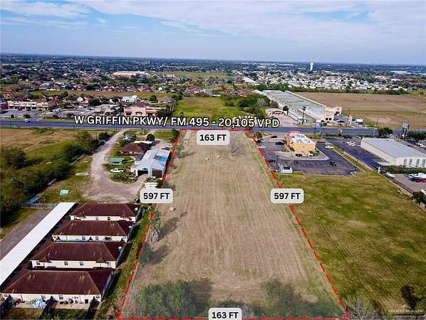 Turn left at signalized intersection between N. Conway Ave. & Griffin Pkwy, head west down Griffin Pkwy and vacant land will be on the left, right next to El Pato restaurant.