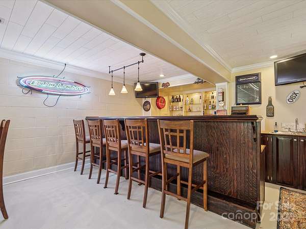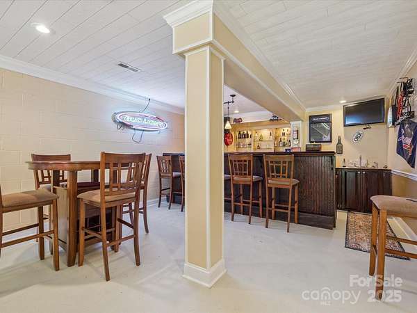 This exquisite full brick residence is set on 2.08 acres lot with a private driveway and circle drive, providing both space and serenity. 2 level home with 4 bedrooms, 4.5 bath, bonus room, and walk-out basement complete with a stylish custom bar/ entertaining space for guests or enjoying family nights (septic rated for 3 bedroom). This home is truly one of a kind! The main level offers the Primary bedroom and bath, family room, dining room, kitchen, and mudroom. Off the living room is a beautiful, covered deck looking over the private backyard/ outdoor kitchen area. Outside also offers a patio area and an outdoor shower for a refreshing retreat on sunny days. The breezeway elegantly connects to the 2car garage, fostering a seamless flow and providing an additional area to enjoy at home or when entertaining. Upstairs offers a 3 bedrooms/1 bonus room, an additional living room. Hardwood flooring throughout the home! Location is prime.. easy proximity to the Golf Course and downtown!