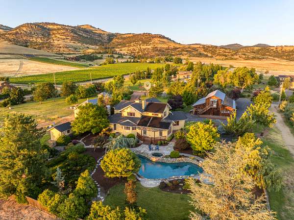 Located in the heart of Southern Oregon, 4050 Royal Crest Road is a 34-acre estate that offers a unique blend of rural charm, scenic beauty, and productive potential. Nestled between Ashland and Medford, the property is ideally situated for those seeking privacy and space without sacrificing convenience. The estate enjoys panoramic views of the surrounding valley and hillsides, and benefits from gravity pressurized irrigation that supports a wide range of agricultural uses. Currently in use as a commercial pear orchard, the land holds promise for future vineyard development, equestrian facilities, or a stunning homestead ranch.