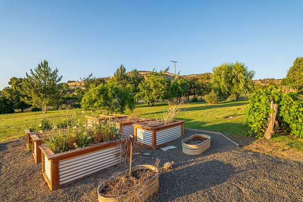 Garden ~ In addition to the expansive commercial pear orchard, the property features a thoughtfully designed personal garden and orchard area near the home. This space includes five raised garden beds, ideal for growing vegetables, herbs, or seasonal flowers. Adjacent to the garden is a small collection of fruit trees and grapevines, offering a charming home-scale orchard for personal use.