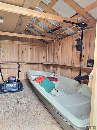 Welcome to your perfect retreat! A cabin with 40 acre lake! This lovely one-bedroom, one-bath cabin combines modern comfort with rustic charm. Nestled in a serene setting the cabin features an open-concept living area with large windows that fill the space with natural light. The cozy bedroom and bath offer comfort and privacy. There's a convenient garage for parking or storage.Enjoy your morning coffee on the charming front porch, which offers a stunning view of a beautiful your 40-acre lake. Dock and boat shed sit at the edge of the water with fantastic fishing opportunities, this property is ideal for a peaceful getaway or could be cozy year-round home.The cabin also comes furnished and includes 14 foot Jon boat with motor.The cabin has zoned heating and air conditioning providing comfort comfort all year round. This cabin truly has it all!