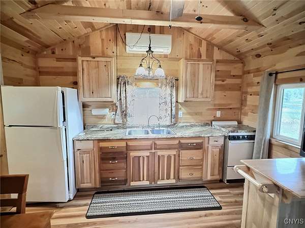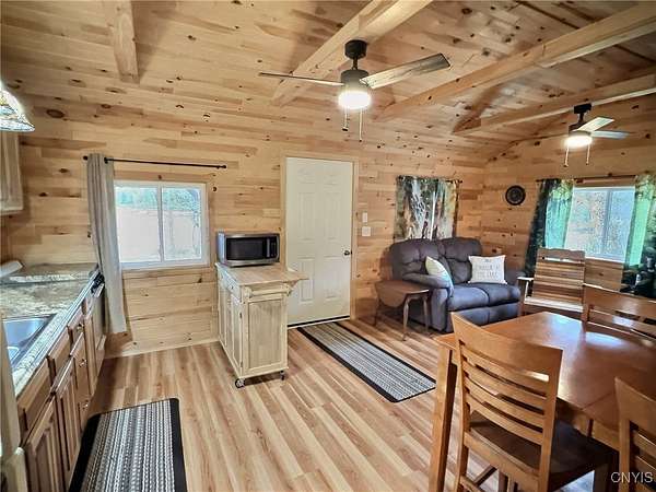 Welcome to your perfect retreat! A cabin with 40 acre lake! This lovely one-bedroom, one-bath cabin combines modern comfort with rustic charm. Nestled in a serene setting the cabin features an open-concept living area with large windows that fill the space with natural light. The cozy bedroom and bath offer comfort and privacy. There's a convenient garage for parking or storage.Enjoy your morning coffee on the charming front porch, which offers a stunning view of a beautiful your 40-acre lake. Dock and boat shed sit at the edge of the water with fantastic fishing opportunities, this property is ideal for a peaceful getaway or could be cozy year-round home.The cabin also comes furnished and includes 14 foot Jon boat with motor.The cabin has zoned heating and air conditioning providing comfort comfort all year round. This cabin truly has it all!