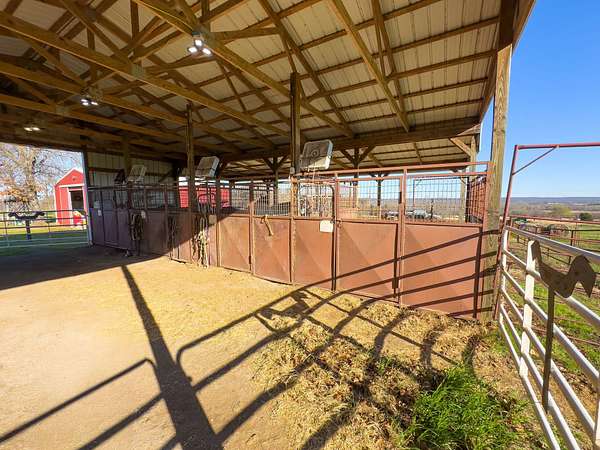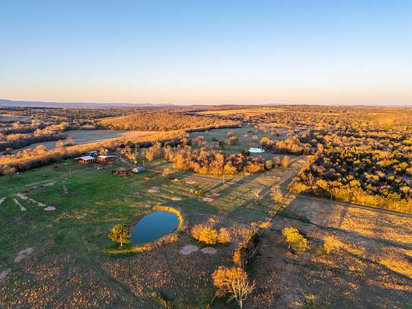 Introducing the Flying T Ranch, a pristine 193.22 +/- acre cattle ranch located near Stigler in Haskell County, Oklahoma! The ranch offers efficient functionality with quality improvements, productive pasture, and a comfortable ranch home that brings everything together! The property is thoughtfully arranged for both ranching operations and country living. At the heart of the ranch sits a beautiful two-story ranch-style home offering 1,860 ± square feet of living space with 3 bedrooms and 2 bathrooms. The home features both an upstairs and downstairs living area, providing plenty of room for family or guests. Just outside the home is a gazebo entertainment area complete with an outdoor fireplace, bar, and television mounted above the fireplace, creating a perfect place to relax, enjoy a cup of coffee, or spend evenings visiting with friends and family while overlooking the property. The ranch is well equipped with several improvements that support both daily ranch operations and equipment storage. A 30x36 shop with a 24x30 enclosed heated and cooled workroom provides a comfortable workspace year-round. The property also features a 60x40 horse barn with multiple stalls and a tack room, offering plenty of room for horses and additional livestock needs. The land itself is well suited for cattle production with four separate pastures that are cross-fenced and set up for rotational grazing. Six ponds are scattered throughout the ranch and serve as excellent water sources for cattle and livestock, while three water wells are located on the property. The home is connected to both well water and rural water, providing reliable water access. The ranch has been kept in pristine working condition with fences regularly maintained and tended to. Along with the strong fencing throughout, other working improvements include a squeeze chute, 10-ton overhead feed bin, and scales, all of which convey with the property. In addition, home furniture, appliances, and outdoor furniture will convey with an acceptable offer, making this a turn-key opportunity for someone looking to step into a fully functional ranch setup. The ranch is conveniently located approximately 50 ± minutes from Eufaula and Lake Eufaula, 53 ± minutes from Fort Smith, Arkansas, and about 1 hour 3 ± minutes from Muskogee, offering a balance of rural privacy with reasonable access to nearby towns and amenities. With quality improvements, productive pasture, abundant water sources, and a beautiful home at its center, the Flying T Ranch offers a rare opportunity to own a well-equipped cattle operation in the heart of Eastern Oklahoma! All showings are by appointment only. For more information or to schedule a private viewing please contact Steele Schwonke at (918) 424-6065 . Disclaimer: The boundary lines shown are approximate and are provided for general reference only. Arrowhead Land Company makes no representations or warranties, express or implied, as to the accuracy, completeness, or reliability of those property lines. Buyers are advised to obtain an independent survey to verify exact property boundaries.