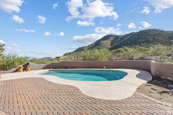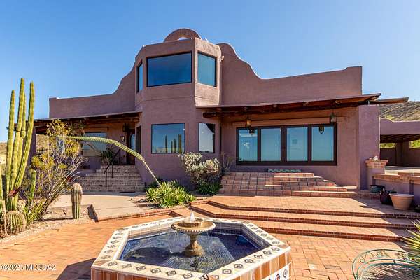 Step into a peice of history! The original home was built in the 1920s, and the rest was added in 1968. In Gates Pass, you have 360-degree views, including all of Tucson's surrounding mountain ranges, Saguaro-studded grounds, city lights, and downtown views. You can have this incredibly unique home on OVER 3 ACRES! Original refinished wood floors & Saltillo tile, wood post beams from antique telephone poles, and wrought iron fence details made from the window bars of the original Buffalo Exchange building! Enjoy your well-maintained pool, with privacy and nature all around. Upon arrival, you're greeted by a private solar-operated gate for access. You are welcomed in with a roundabout, extended carport, and large courtyard with a custom fountain, TONS of extra space for entertaining!