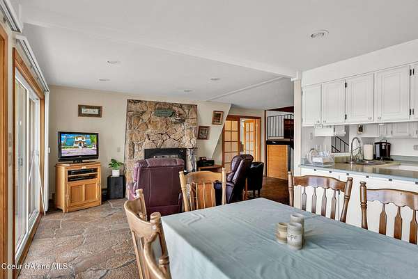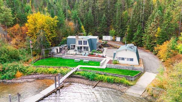 An irreplaceable Coeur d'Alene Lake estate--never before offered on the market. This remarkable 3.44-acre property offers 307 feet of deep, crystal-clear frontage with two private docks, usable grounds, and the perfect blend of privacy accessibility to downtown Coeur d'Alene. The spacious 5-bedroom, 3-bath multi-level home is built for gatherings, comfortably sleeping 16+ with extra cots. Inside, enjoy cozy evenings around the wood stove or propane stove, while expansive windows capture the lake from nearly every room. Step out onto the balcony for panoramic views of Coeur d'Alene Lake, the perfect setting for coffee at sunrise or cocktails at sunset. The upstairs master suite is a true centerpiece, featuring a huge jetted soaking tub unlike anything you've seen. Outdoors, the lifestyle continues with a hot tub, private sauna, and a massive concrete patio complete with both a built-in gas grill and a classic charcoal grill. Gather around the firepit under the stars, or let kids and guests enjoy the expansive grassy play area, perfect for games, events, and lakeside fun. Amenities extend beyond recreation: a 23x32 detached garage/shop, wood shed, two additional storage sheds, and a detached root cellar provide endless utility. Adding to the natural beauty, a seasonal creek winds through the property, creating a serene backdrop year-round. All furnishings are negotiable, making this a turnkey opportunity. With unmatched frontage, rare amenities, and limitless potential, this is more than a property--it's a legacy on Coeur d'Alene Lake.