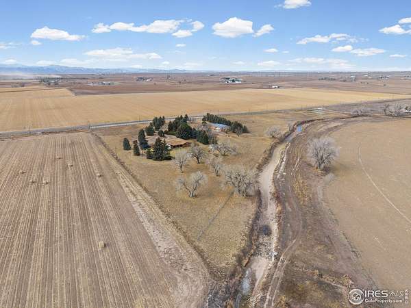 Beautiful all-brick ranch on nearly 10 acres with unobstructed views in every direction. This one-owner home features a custom floor plan with 2,399 sq ft, 3 beds, and 3 baths, offering a spacious and thoughtfully designed layout. Enjoy a large patio overlooking the open land and peaceful rural setting. The property also includes a 2,400 sq ft shop/outbuilding, perfect for equipment, hobbies, or business use. Centrally located between Cheyenne, Fort Collins, and Greeley for easy commuting. A rare acreage opportunity in Ault. The home has been well cared for with several recent updates, including a new roof in 2023 and a new hot water heater in 2023. The outdoor arbor and swing were freshly painted in 2025, and the property is equipped with a sprinkler system. A unique feature is the pond that collects drain water, which is used to irrigate the trees and connects to multiple exterior hose hookups for watering various areas of the property. The impressive 2,400 sq ft shop includes its own kitchen and bathroom, and the property also offers an RV dump and a water-supply storage ditch. The home features all-electric heat with individual ceiling heating coils and thermostats in each room. Inside, you'll find three oversized bedrooms, a kitchen with a double oven and walnut cabinets, a wood-burning fireplace serviced in December 2025, and a combination of Berber carpet and wood flooring throughout. All supporting documents are in the documents tab as well as at the property for reference.