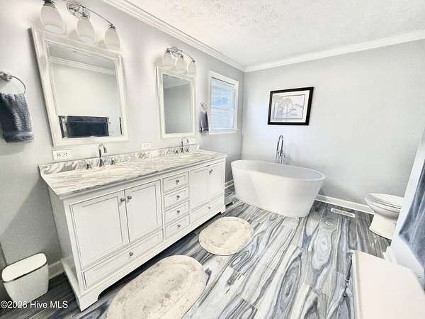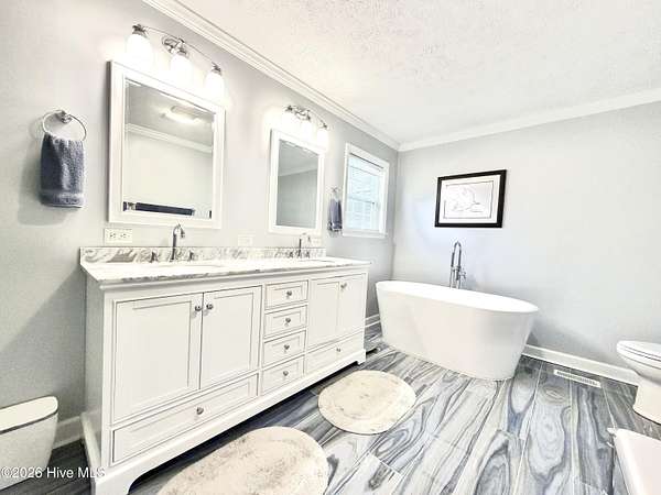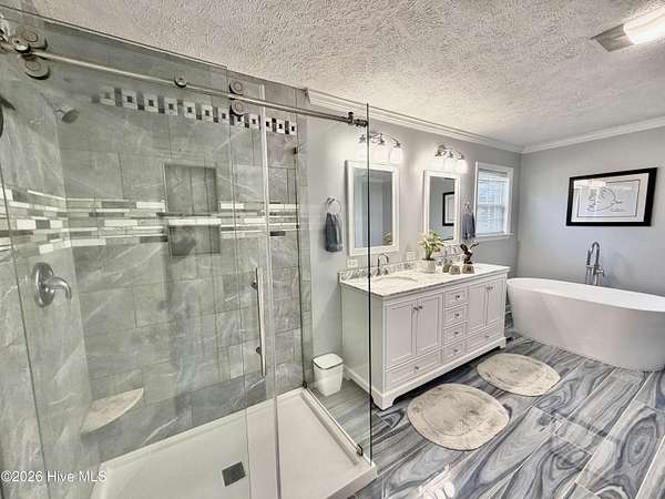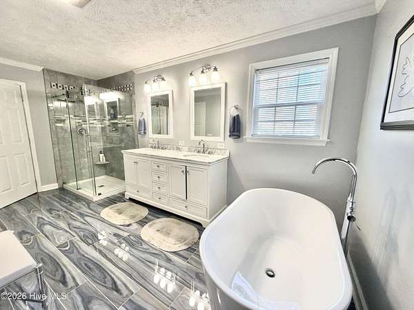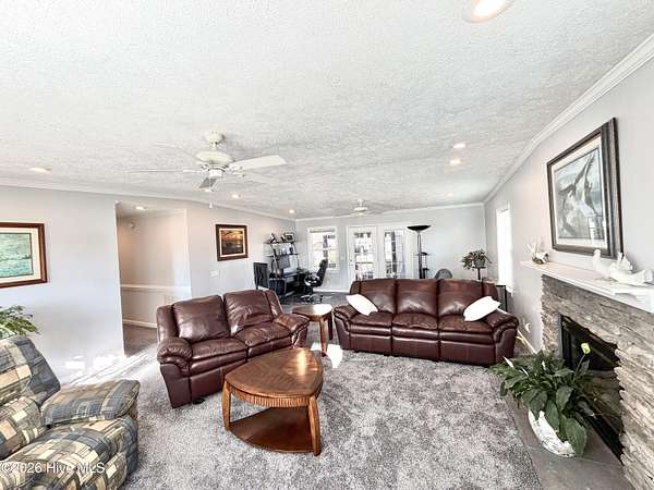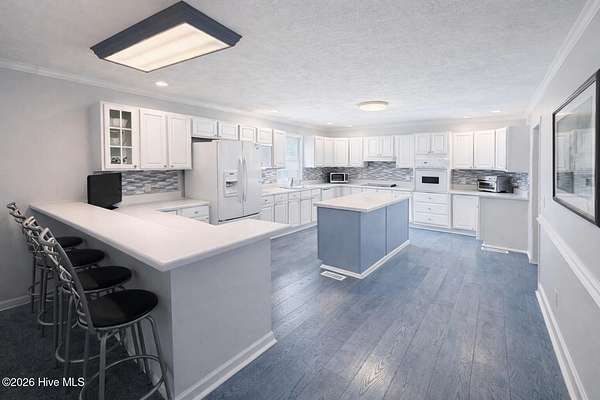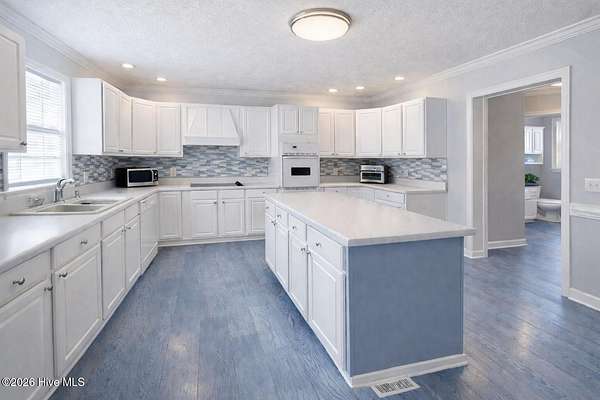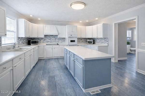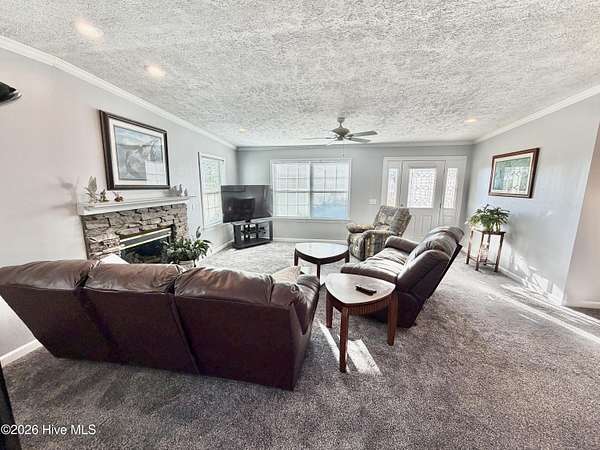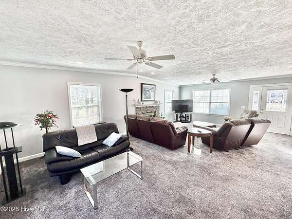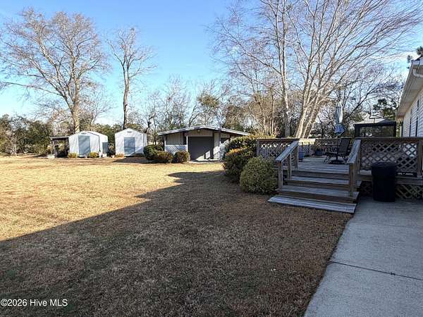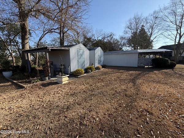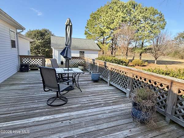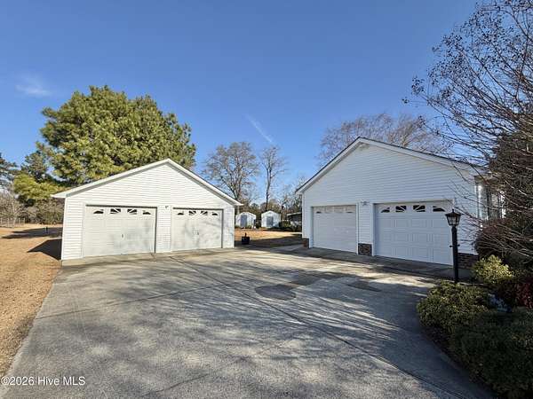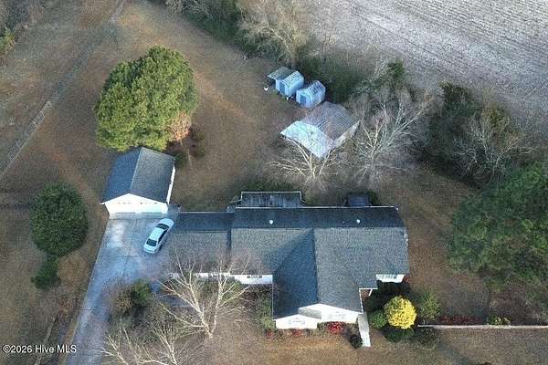 Stunning 3-bedroom, 3-full-bath rural home with 2,053 sq ft of heated living space on 1.75 acres outside city limits - no city taxes and no HOA! Fully remodeled in 2018 with major upgrades including: new roof with architectural shingles (Lifetime warranty in place), Trane HVAC (10-Year Warranty), updated electrical and plumbing, fresh paint, and refreshed finishes throughout. Inside you'll find engineered hardwood floors in main living areas, porcelain tile in 2 of the 3 bathrooms, and cozy carpet in the bedrooms and living room. The home features vaulted ceilings and energy-efficient windows, creating a bright, open, and airy feel filled with natural light. Exceptional outbuilding and covered storage setup includes: a 2-car attached garage, 24x24 wired detached 2-car garage, 20x20 wired workshop/1-car garage with built-in workbench, additional covered storage shelter, and two 10x12 storage sheds - all in excellent condition. With 5-car total covered capacity plus workshop and hobby space, there is ample room for vehicles, boats, kayaks, tools, and hands-on projects. Stay connected with multiple high-speed fiber internet options including Spectrum and Infinity Link - perfect for remote work, streaming, and gaming. A private dedicated well supports irrigation, outdoor watering, outdoor cleaning, and washing equipment. Enjoy outdoor living on the full-length rear deck with a screened-in section for year-round enjoyment, surrounded by mature landscaping, grapevines, and fruit trees including pear and apple. Great location! Halfway between Kinston and Greenville. Move-in ready, meticulously maintained, and truly one of a kind - a rare opportunity to enjoy modern comfort, peaceful country living, a scenic lake view as a bonus, and the functional space today's buyers value most.