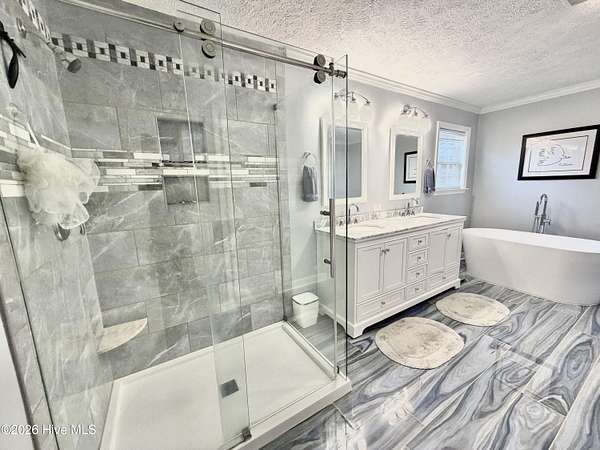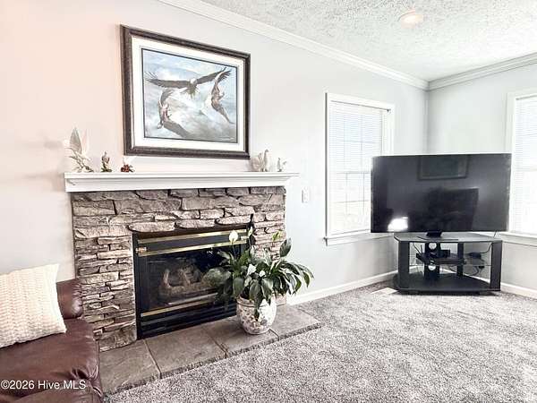 - Blinds/Shades, Ceiling Fan(s), Gas Log, Kitchen Island, Walk-In Closet(s), Walk-In Shower