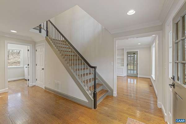 Open Sunday, March 15th, 1:30-3:30 pm. Privately situated in the heart of desirable Free Union, this classically styled home features well considered indoor and outdoor spaces and has been tastefully and completely renovated. Overlooking a pond and the woodlands beyond, the entrance level offers both living and family rooms, the latter with a gas fireplace and built-in book shelves, as well as a open kitchen, just off the dining room. Additionally, the first of two primary bedroom/bathroom combinations is found on the main level as is a half bath, the laundry and a large screened porch. The second floor features 3 additional bedrooms including a second primary suite, access to a roof top balcony and a generous storage space above the garage. Partially fenced and with a paved drive, ample garage space and a large and level patio, this home and land will not disappoint.