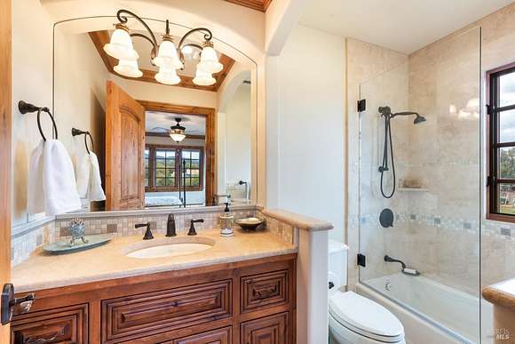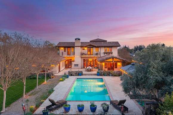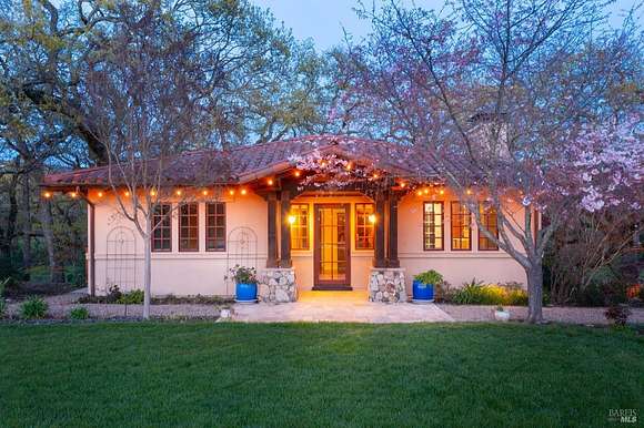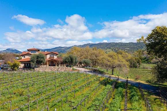 A family-owned estate since 1943 like this rarely becomes available or even makes it on the market. The gently sloping, 19.2-acre parcel sits on the Valley floor and is bisected by the Soda Creek. It has always been an Agricultural property, most recently planted to Vineyards in 2004. The entrance is anchored by an original 1907 agricultural barn, then winds through the vineyards framed with stately Oak trees and gorgeous natural landscape. Three wells on the property provide ample water to three homes and approximately 10.9 acres planted predominantly to Cabernet Sauvignon. The family built the well-constructed European Farmhouse-style main home and guest house from the ground up in 2009. The main house, 4224+/- sq. ft., with 4 BD, 4.5 BA and great room. Sited next to the pool lies the guest house of roughly 1000+/- sq. ft., kitchen, living room, dining room, two bedrooms, and 1.5 bath. A sufficient distance away, you'll find a complete ADU with 1350 square feet of living. Zoning allows for Winery use and the property benefits from having an existing turning lane on the Silverado Trail directly in front of the property entrance.